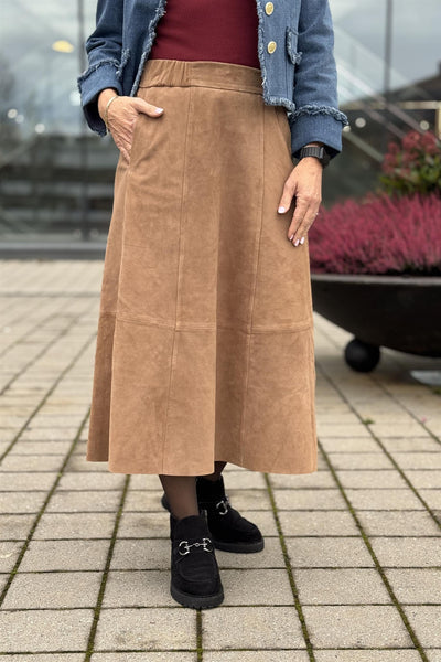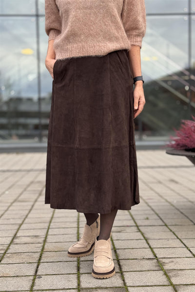 RAH Nina suede skirt long mørk brunt
