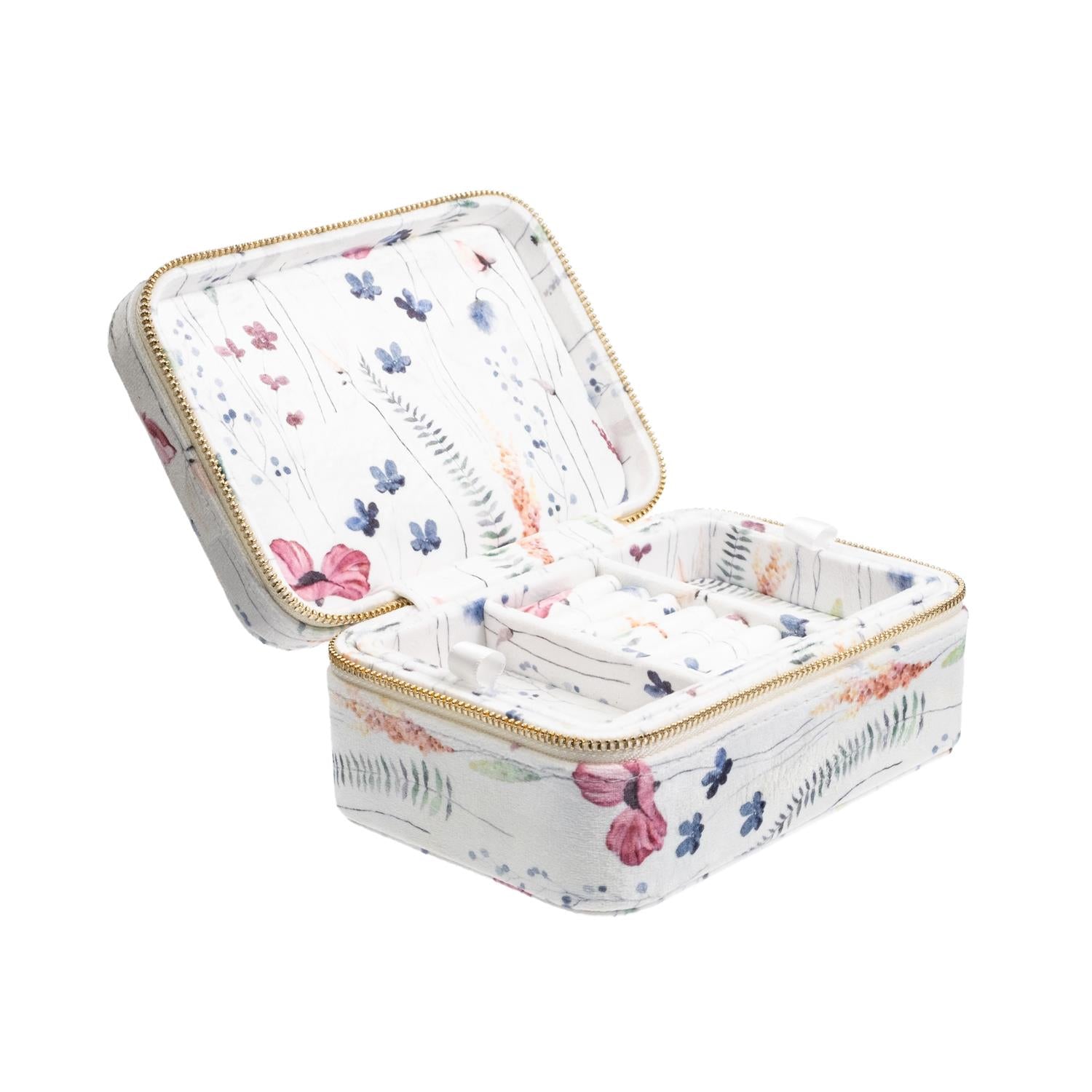 Smykkeskrin i velur fra Dark med 2 etasjer. 11x15 cm, høyde 7 cm.