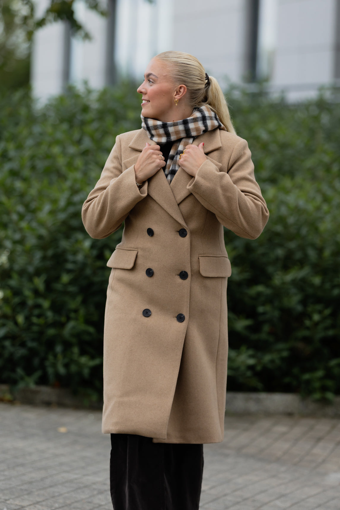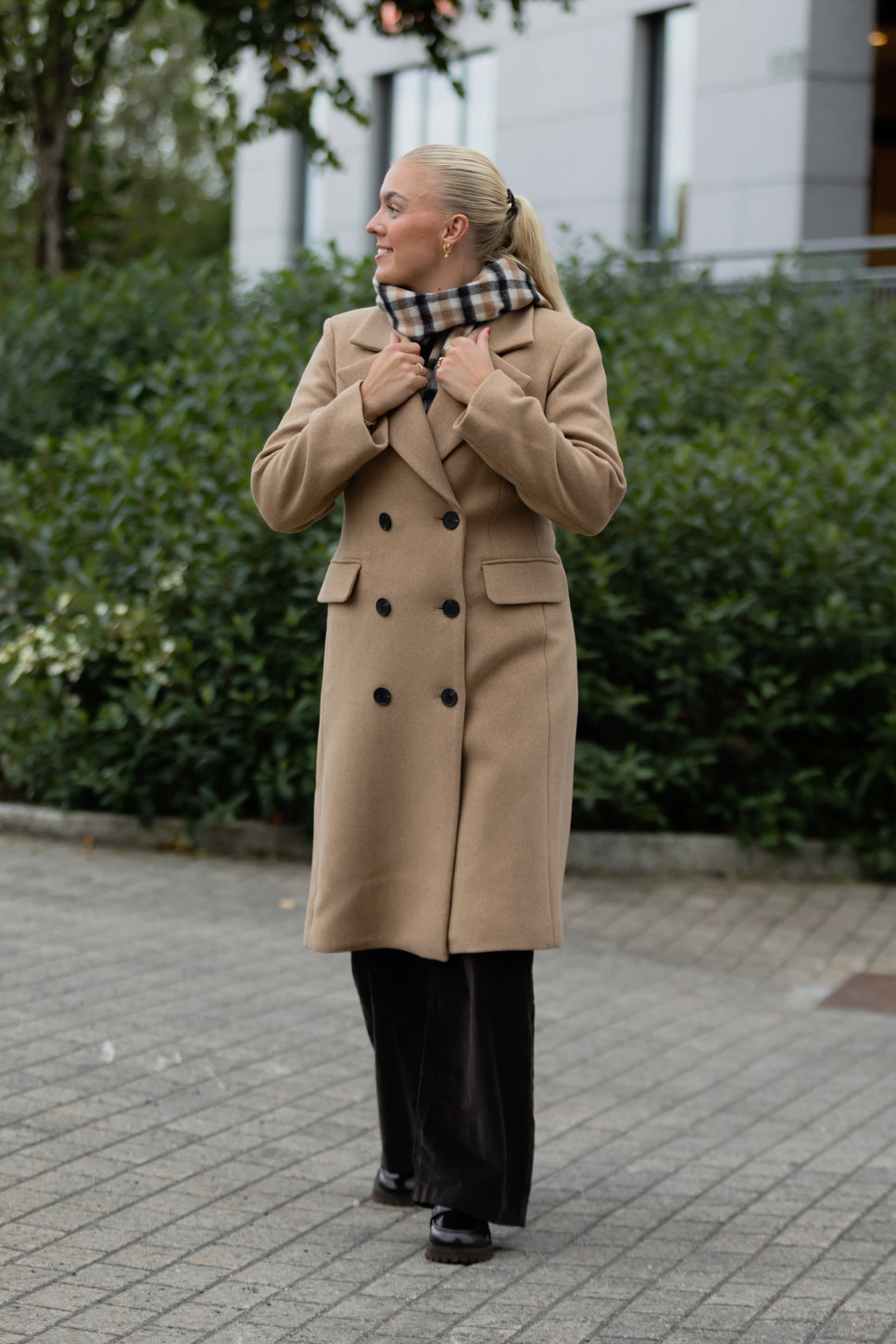 Endelig en innsvingt ullkåpe i vakker lys, camelfarge. Thora coat fra InWear er dobbeltkneppet, og har lommer med klaff i front. Lengde er rett under kne, slik at den oppleves lett og elegant. Er vanlig i str. Bystemål i str. 38 er xx
