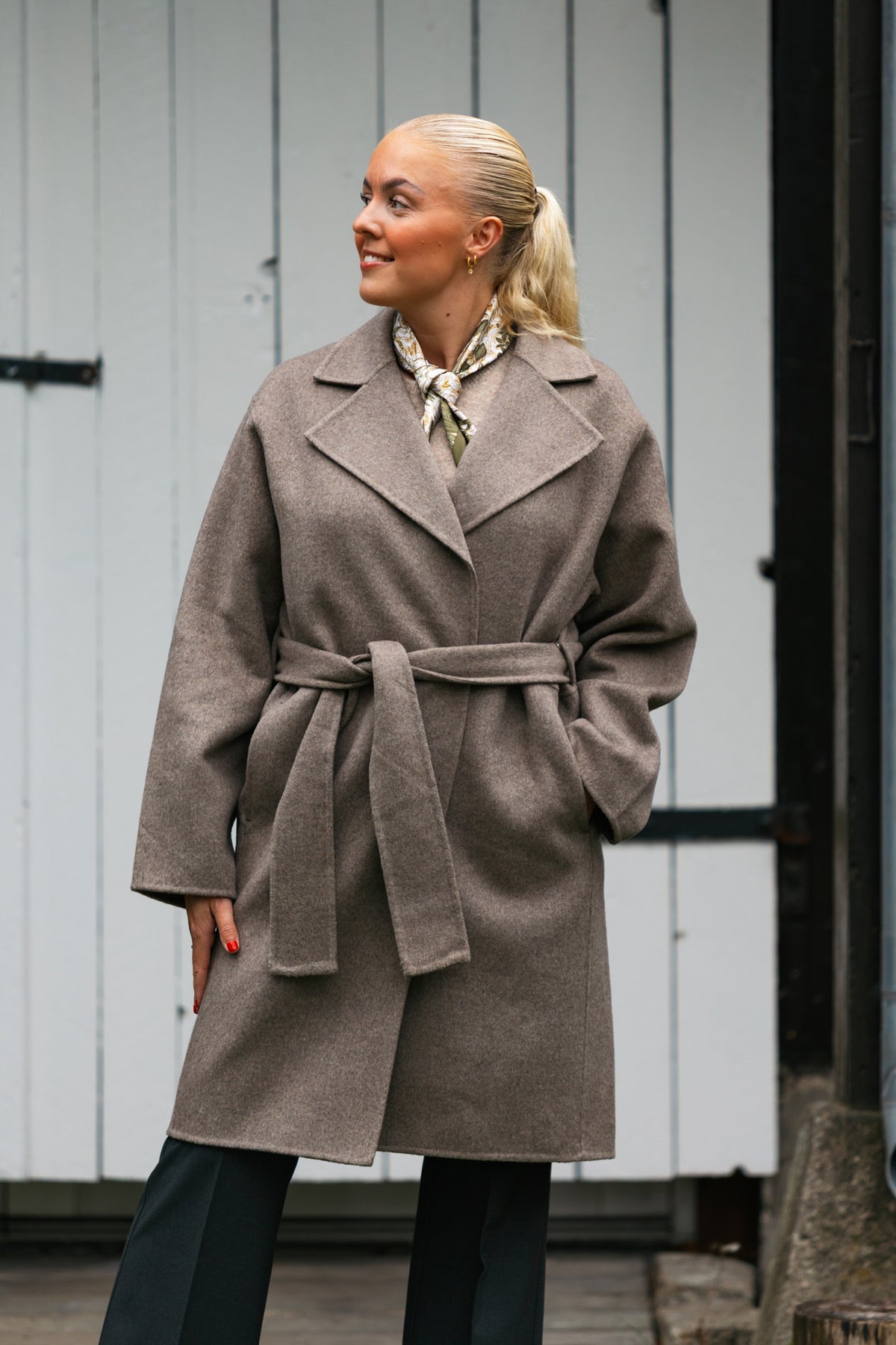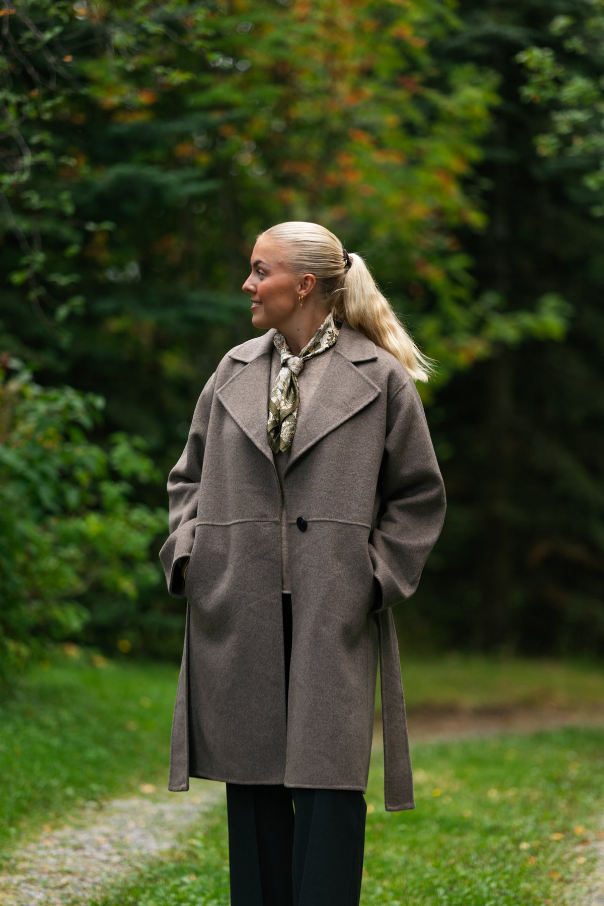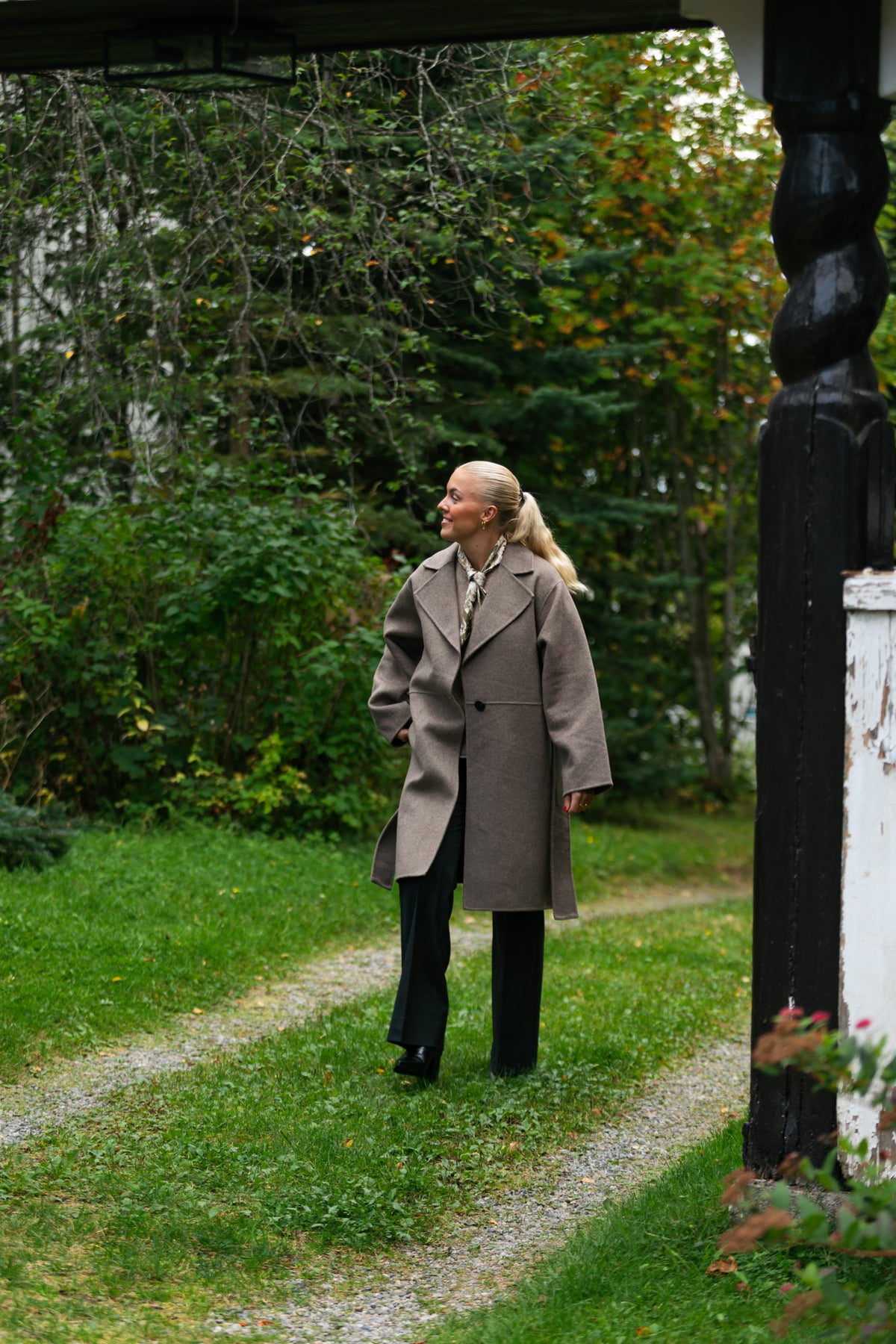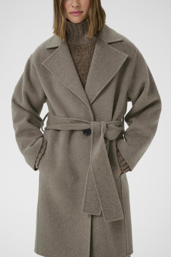 Yilla fra InWear er en oversized kåpe med myk overflate, og vide slag på kragen. Kåpen har droppede skuldre, én synlig knapp og matchende belte. Rett passform og lange ermer gir rent uttrykk. Den er uforet og litt stor i størrelsen, her kan du vurdere å vippe ned en størrelse.