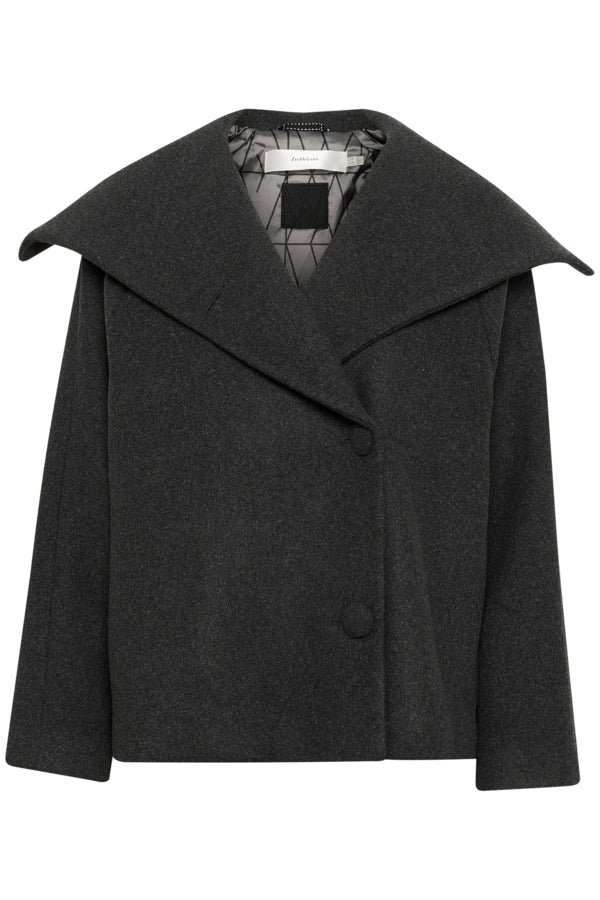 Nydelig kort ulljakke fra InWear. Snittet er helt riktig til høstens trend. Perry har tre store trukne knapper for lukking. Den er like fin om du knepper kun to og har den mer åpen i halsen. Jakken er kort, går til rett nedenfor hoftene, og har stikklommer i siden. Raglandsfelling i ermene gjør den litt god i størrelsen, slik at noen velger å gå ned en str. Den korte kåpen er perfekt til både bukser og skjørt. Lett å velge når du skal ut og inn av bil, uten at det er alt for kaldt. Den er foret.