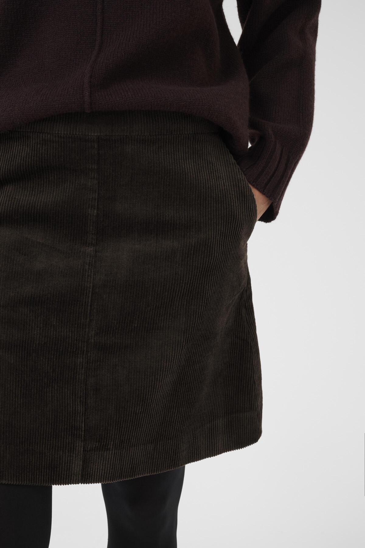 Lings er et fint cordskjørt fra Part Two i en dyp bordeaux farge. Skjørtet har A-shape, stikklommer og strikk bak i linning og glidelås i siden. Lengde til rett over kneet. Dette skjørtet er perfekt utover høsten, med strømper og boots til. Bruk en chunky strikkegenser eller fin bluse sammen med skjørtet - alt etter anledning. Dette kan brukes mye, og det liker vi!