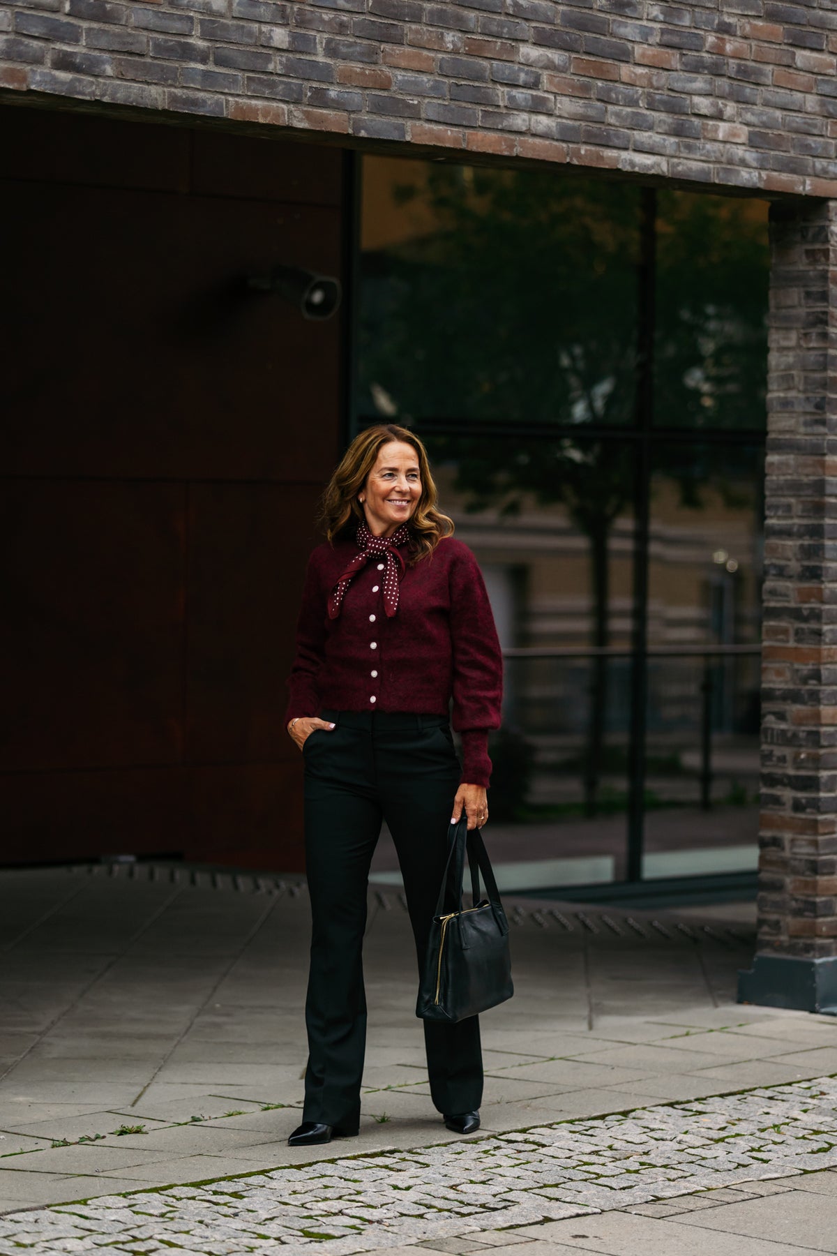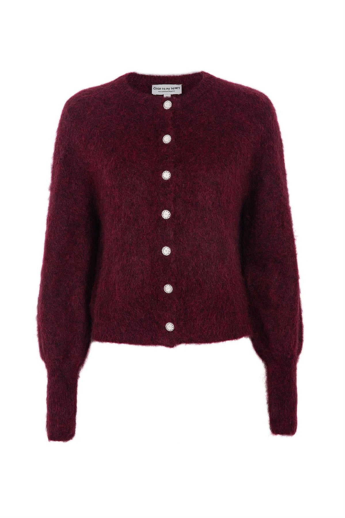 Sonia er en nydelig cardigan fra Close to my Heart i mohairmiks. Her i høstens vakre bordeauxfarge.Pyntede knapper er prikken over i-en. Jakken er vanlig i størrelse og fasong. Lengde til hoften, så er perfekt å style sammen med et skjørt denne sesongen.