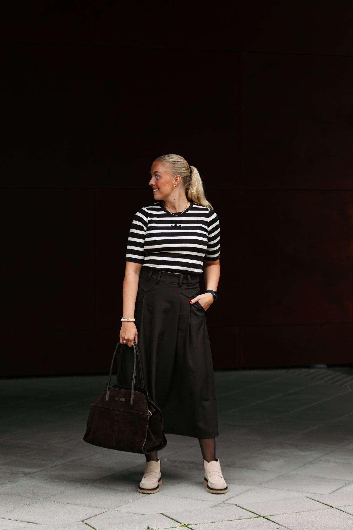 Vi fortsetter med de fine skjørtene fra Co`Couture! Luna er bygget på favoritten Anya pleat skirt.. Luna har oppdaterte detaljer med klafflommer som pynt i front - stikklommene kommer rett under disse. Skjørtet faller fint, med legg på rett sted bygger det ikke i bredden. Har midi lengde til ned på leggen. Er vanlig, til litt godt i størrelsen. Om du er mellom to størrelser så kan du vurdere å vippe ned.