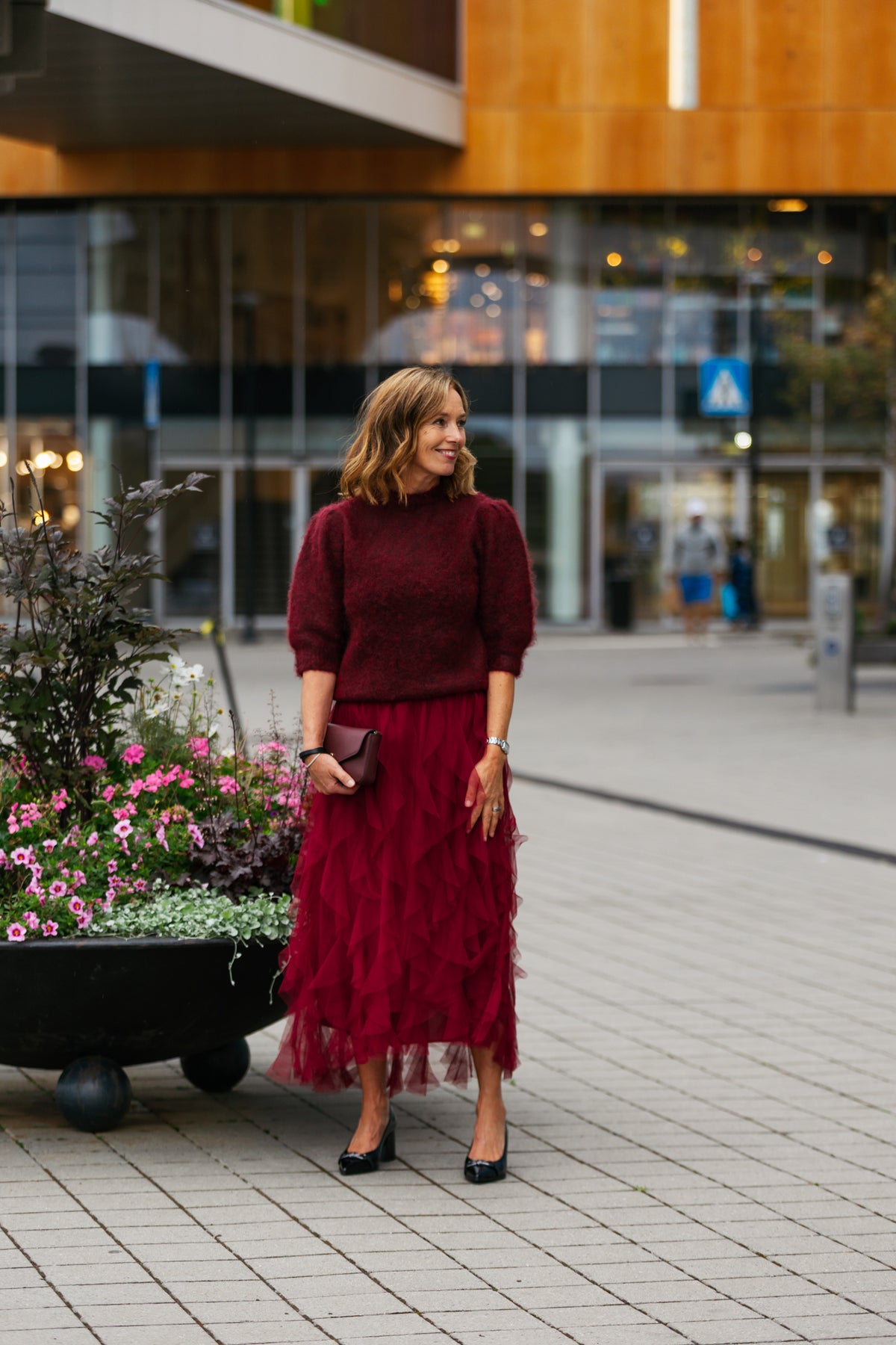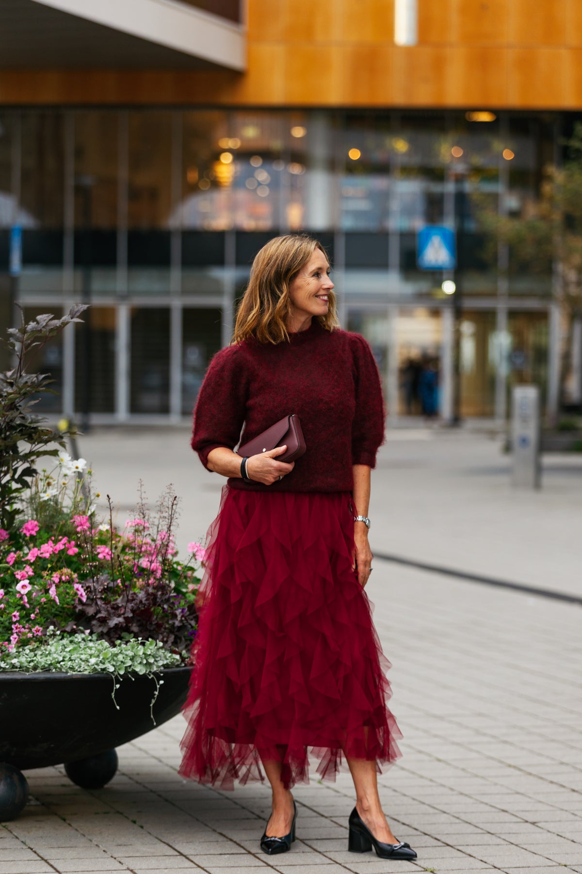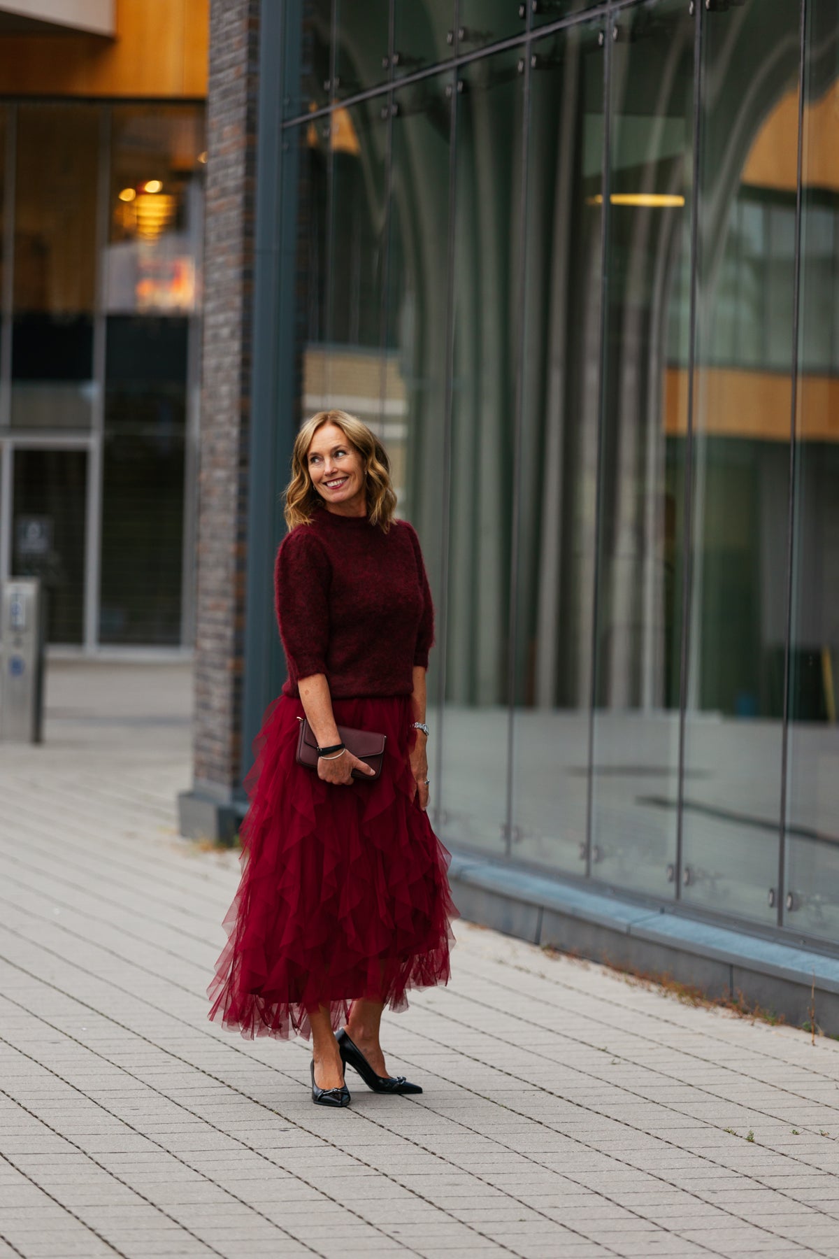 Superkult tyllskjørt, lag på lag. Er strikk i livet og midi lengde. Dette skjørtet er like fint å style med en chunky strikk, som til julebordet med en fin topp og heler.
