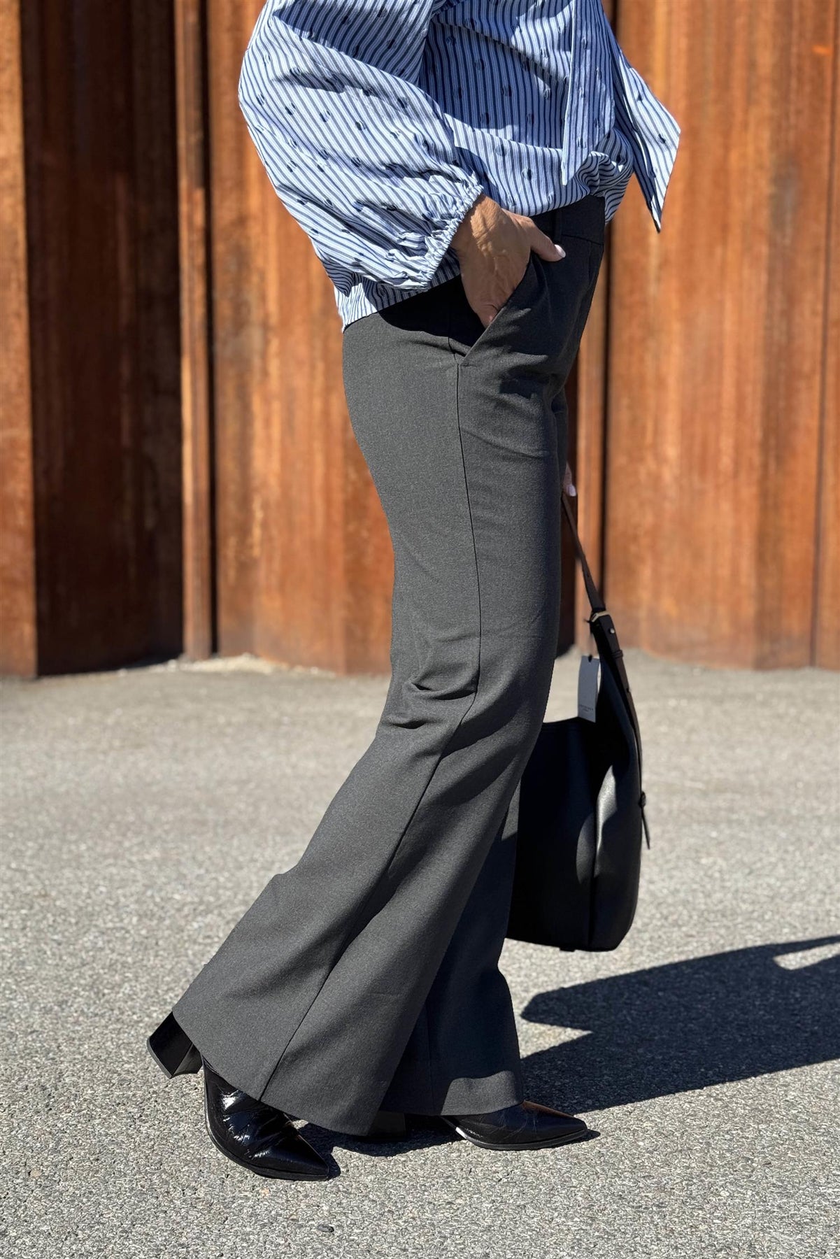 Olivia er en modell fra Five Units som vi liker veldig godt, og her kommer den i en fin gråfarge. Grått er fint sammen med høstens colør av beigetoner, blått og burgunder. Olivia er høy i livet, og med flared fit - slipper fra låret og går ut i sleng nederst. Er litt videre over lår, og kne enn det Clara er.