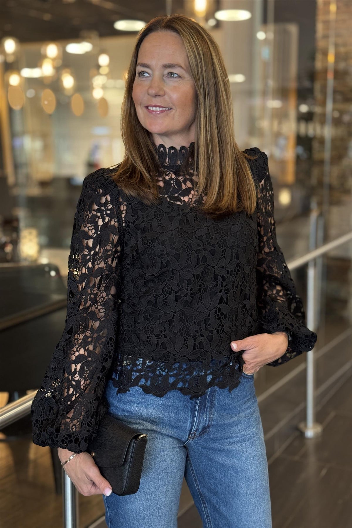 Becca fra Golightly er en nydelig bluse som du kan style både opp og ned. Den elegante kragen, sammen med blondene gir blusen et eksklusivt og delikat uttrykk