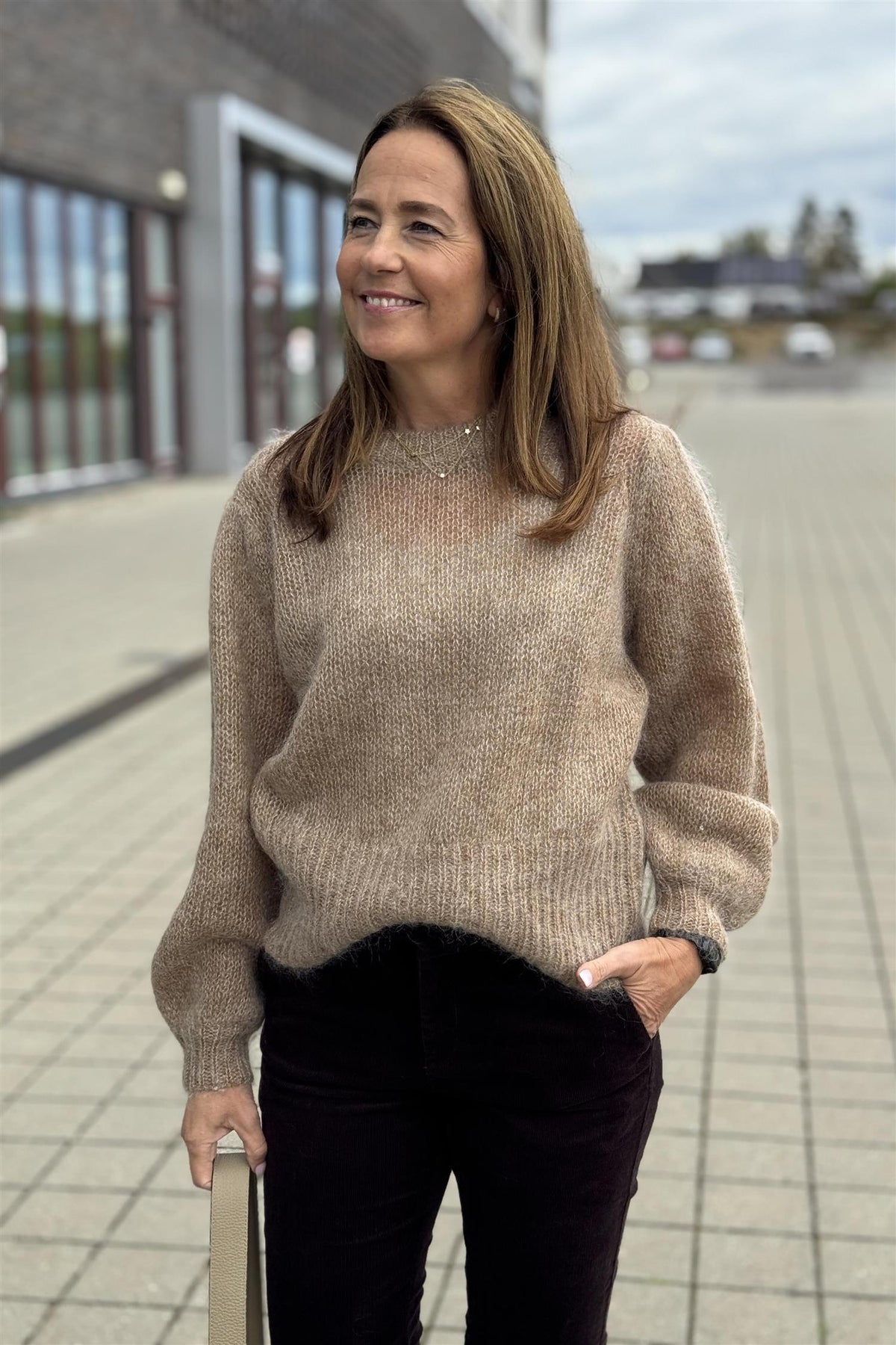 Lambu knit fra YAS er en chunky strikk i delikat jordfarge, som passer godt til høstens bruntoner. Genseren har rund hals, og løs passform Er vanlig i størrelsen.