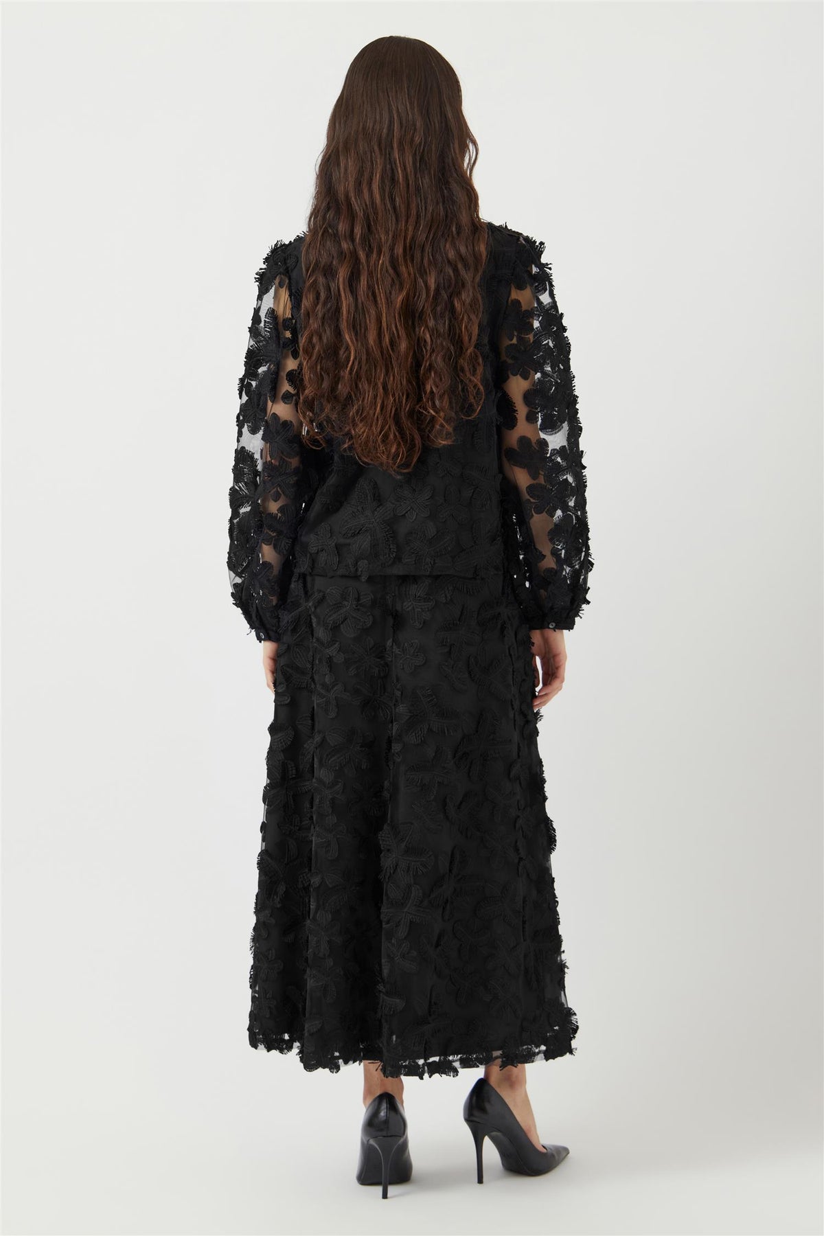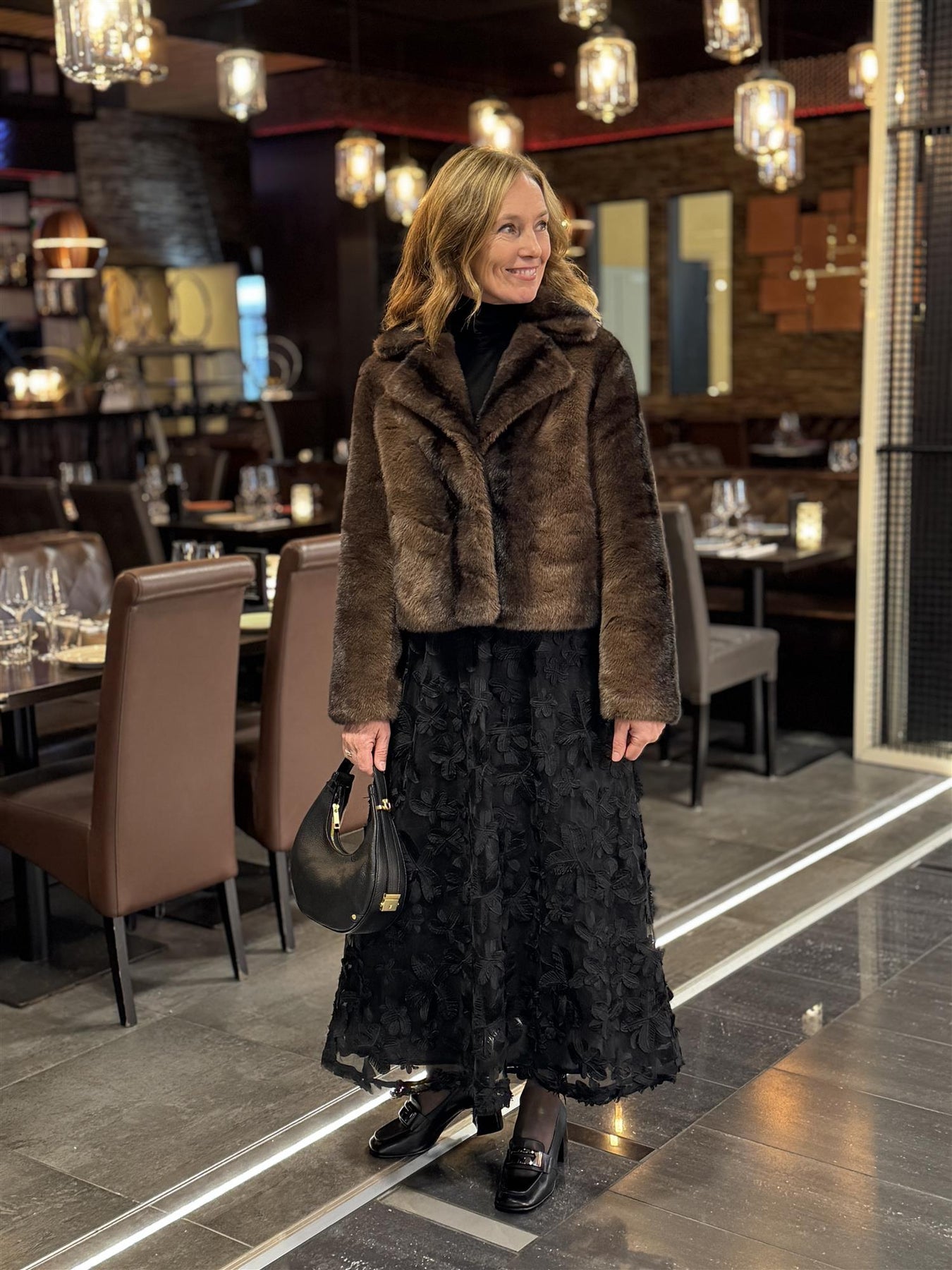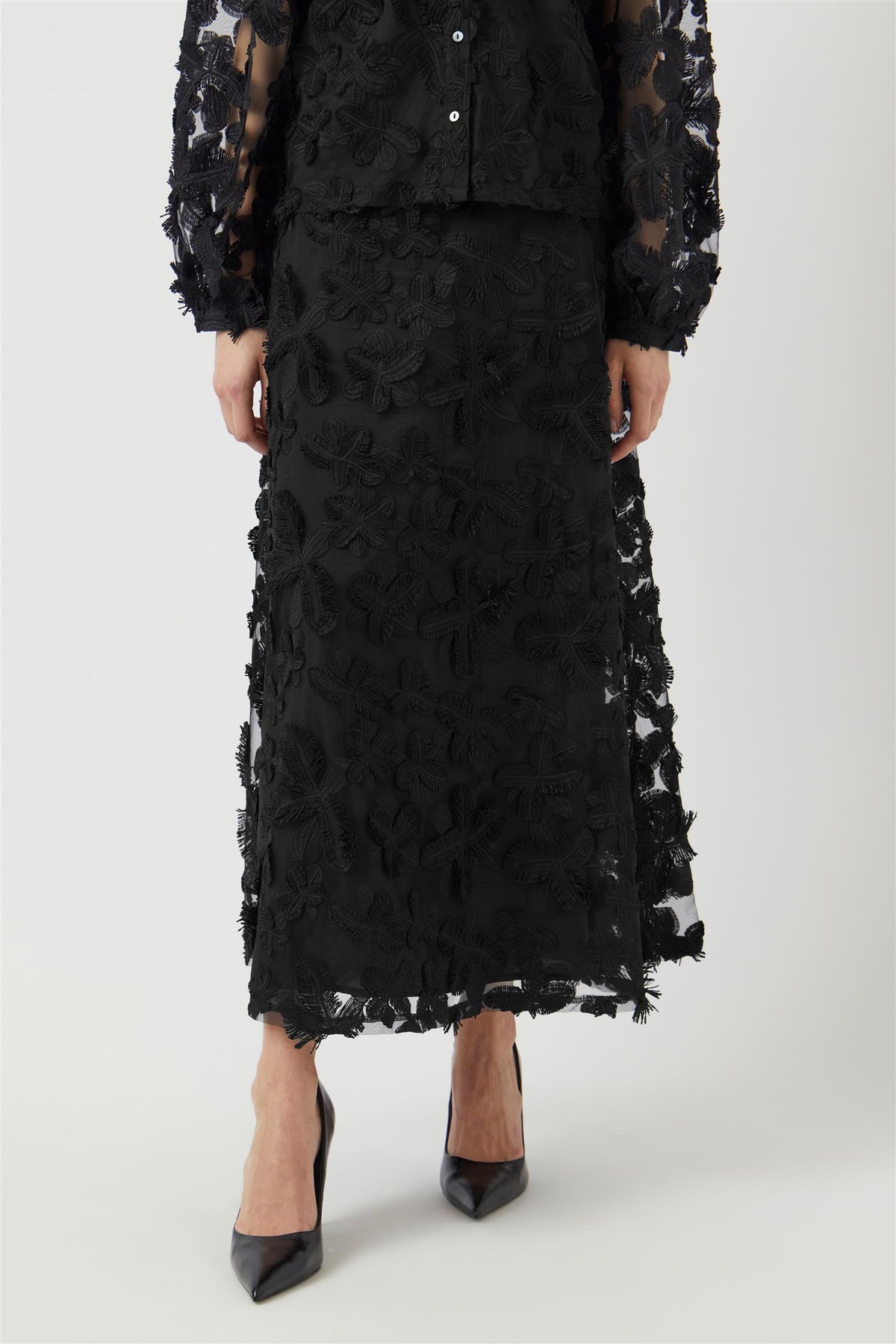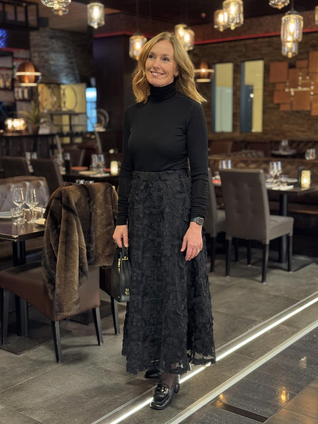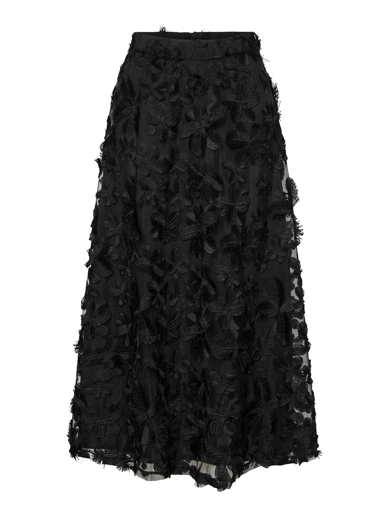 Trenden med de lange skjørtene er sterk denne sesongen, og Karly skjørtet fra YAS er så fint med påsydde applikasjoner. Fint å pynte seg med, eller style det med en chunky strikkegenser som til tyllskjørtene. Applikasjonene gir en 3D effekt.