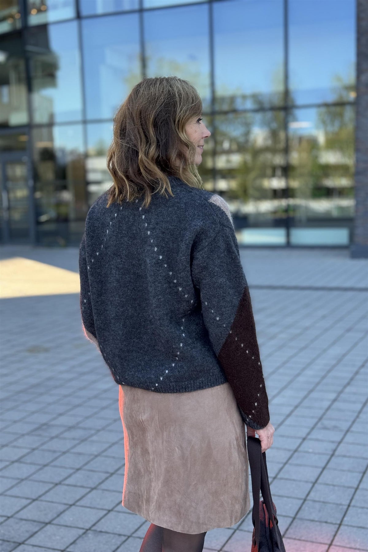 Ty Sweater fra One and Other er nydelig! Myk strikk, i fint avpasset check-mønster foran og ensfarget bak. Perfekt, chunky genser for høst og vinter. Rund hals, og er vanlig i snitt og fasong.