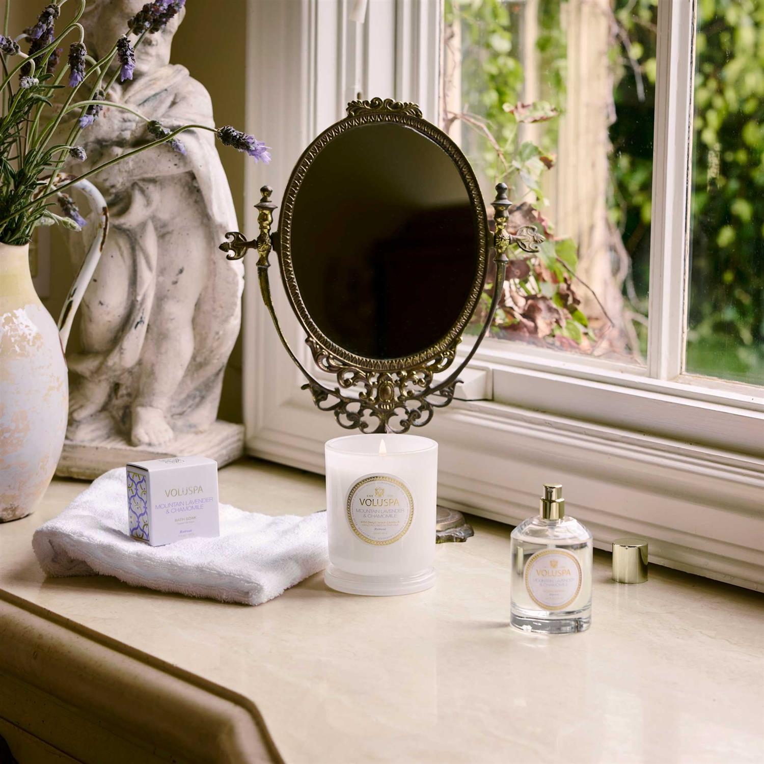 Oppdag dine innerste tanker mens du reiser innover til en drømmenes eng. Overgi deg til beroligende toner av Provence-lavendel, eukalyptus, blå kamille og sedertre. Finn ro og hvile i denne aromatiske, urtepregete buketten av håndplukkede duftopplevelser.