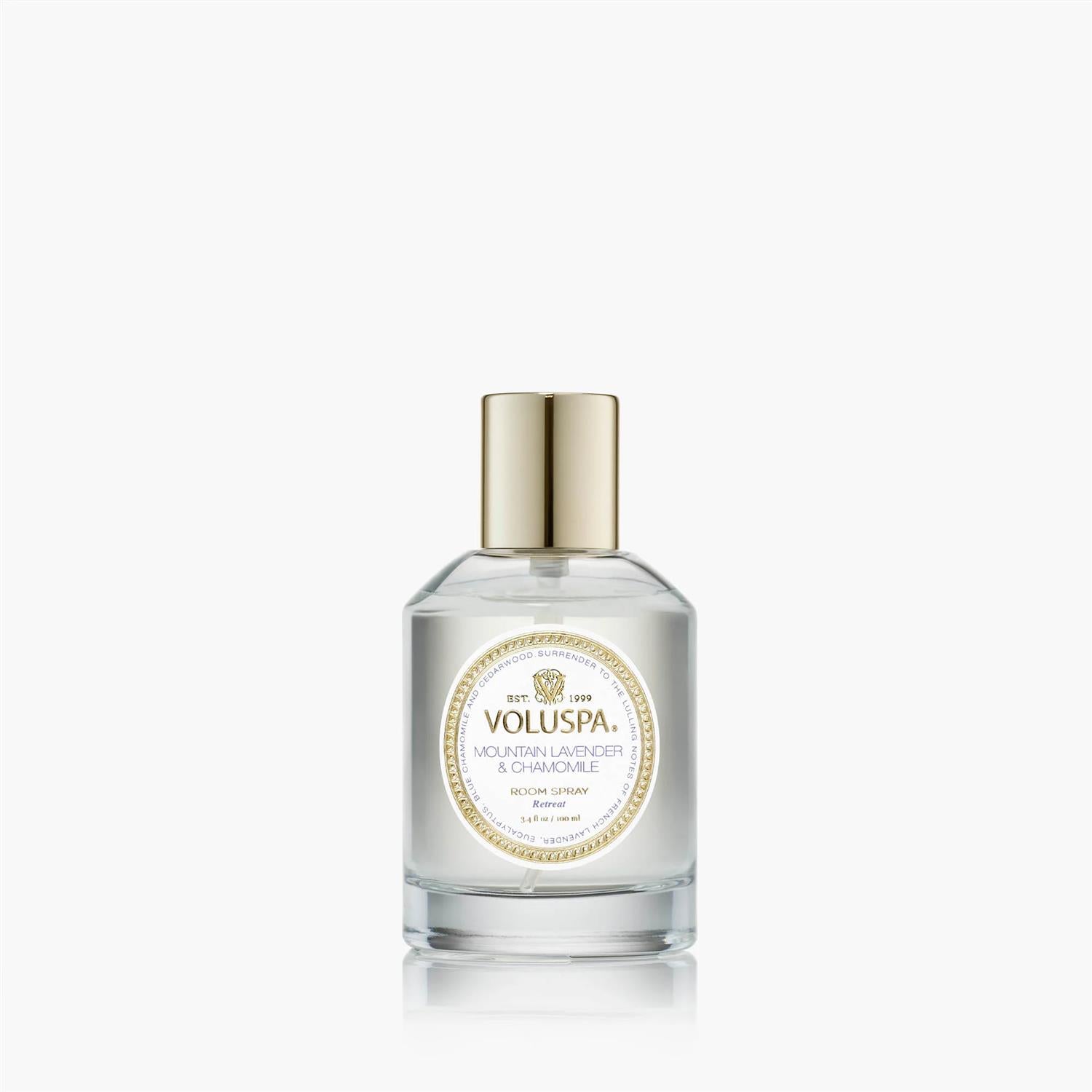 Frisk opp rommet med Voluspas aromatiske romspray – et flammefritt duftsprøyt der du trenger et løft. Sprayen kommer i en elegant glassflaske med gullfargede detaljer for et diskret, dekorativt preg.