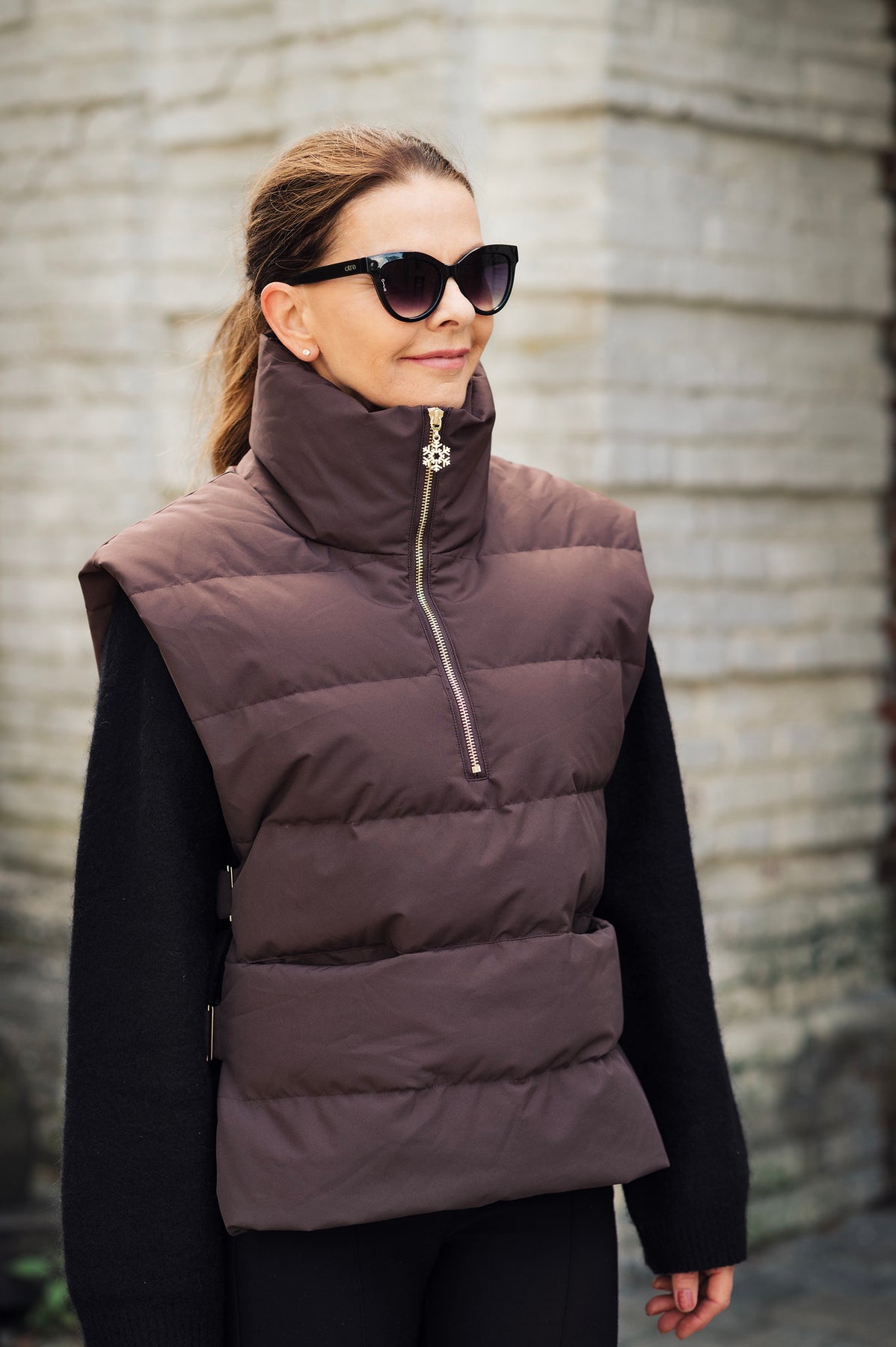 Varm Dunvest fra Thoq med høy krave og justeringsmulighet i siden.