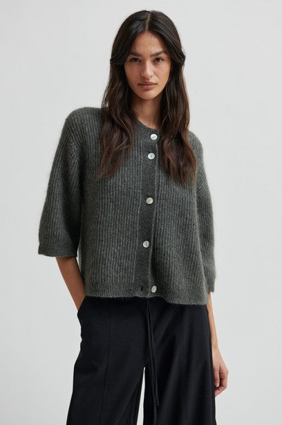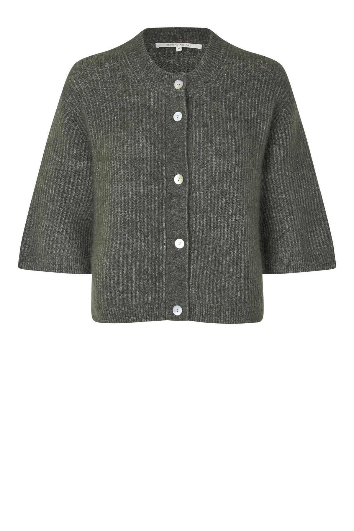 Andrea cardigan fra Second Female er helt nydelig strikk. Ermer til albue gir den det lett uttrykk. Kort modell som også egner seg godt til å ha utenpå kjole. Knapper i perlemor.
