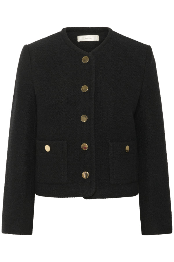 Enkel og elegant bouclejakke fra InWear. Zeenia har rund hals, og klassiske gullknapper i front. Lommer i front, og rett snitt. Jakken er perfekt både til kjole, skjørt eller bukser.