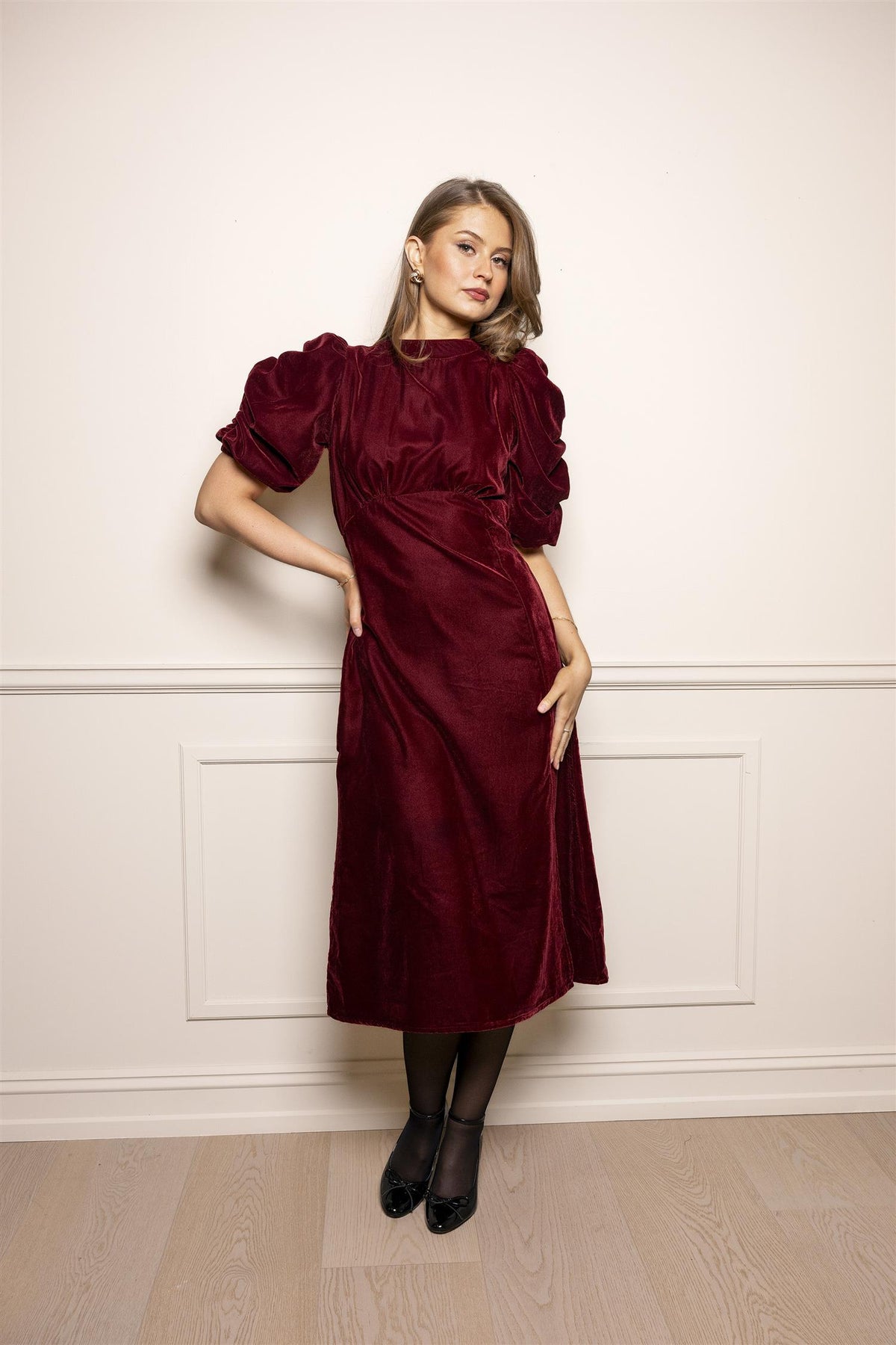 Dakota-kjolen fra Missmaya er en tidløs midikjole. Nydelig bordeauxfarge, som er perfekt i tråd med trenden denne sesongen. Kjolen er designet for både komfort og eleganse. Den har en klassisk rund hals, en delikat knytelukking i ryggen og en skjult glidelås for en sømløs passform.