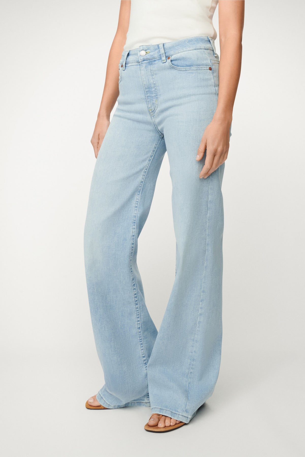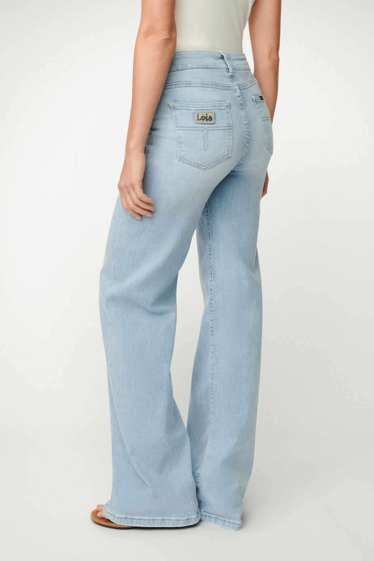 Palazzo fra Lois, her i myk hypersoft bleach for vårsesongen. Palazzo sitter fint og smalt øverst, har mye vidde nedover bena. Er medium høy i livet, myk stretch og pent plasserte baklommer.