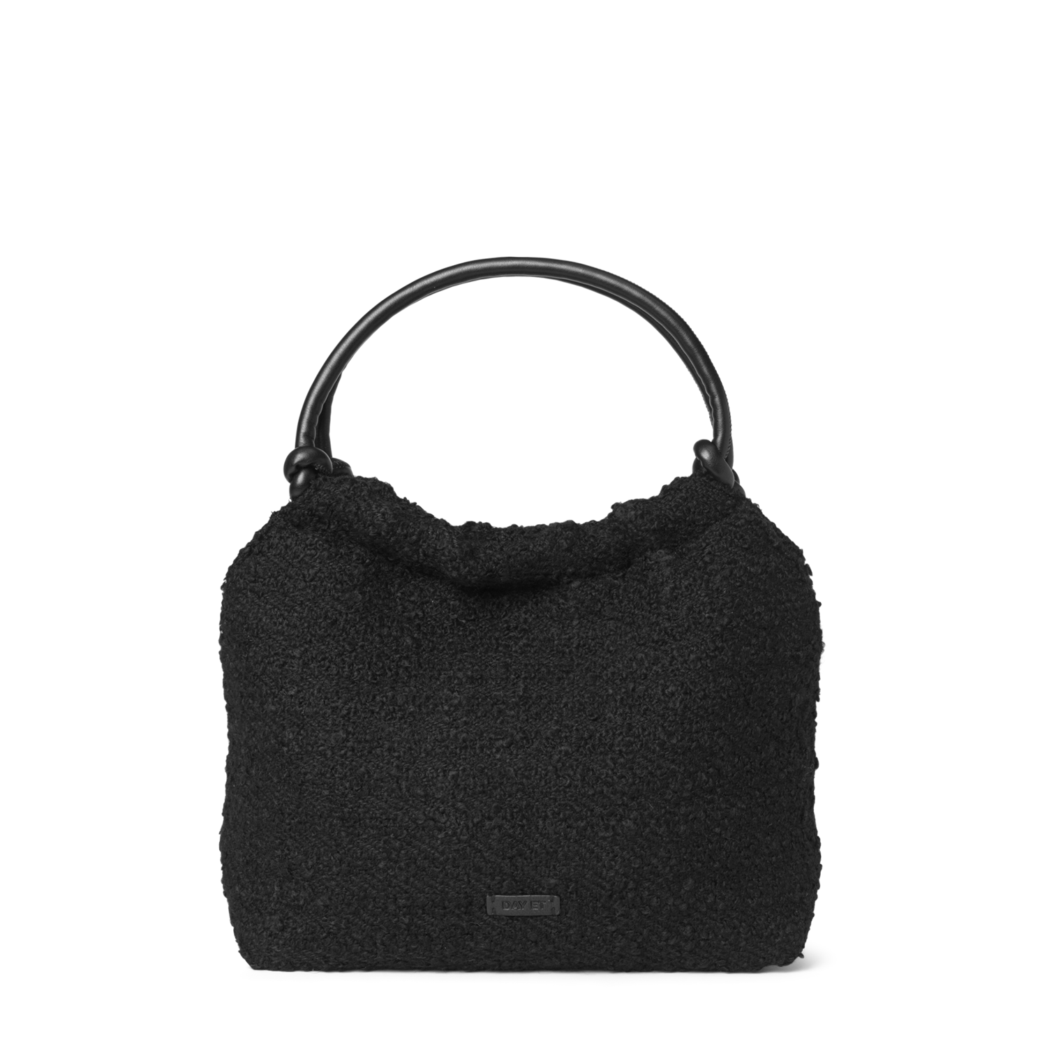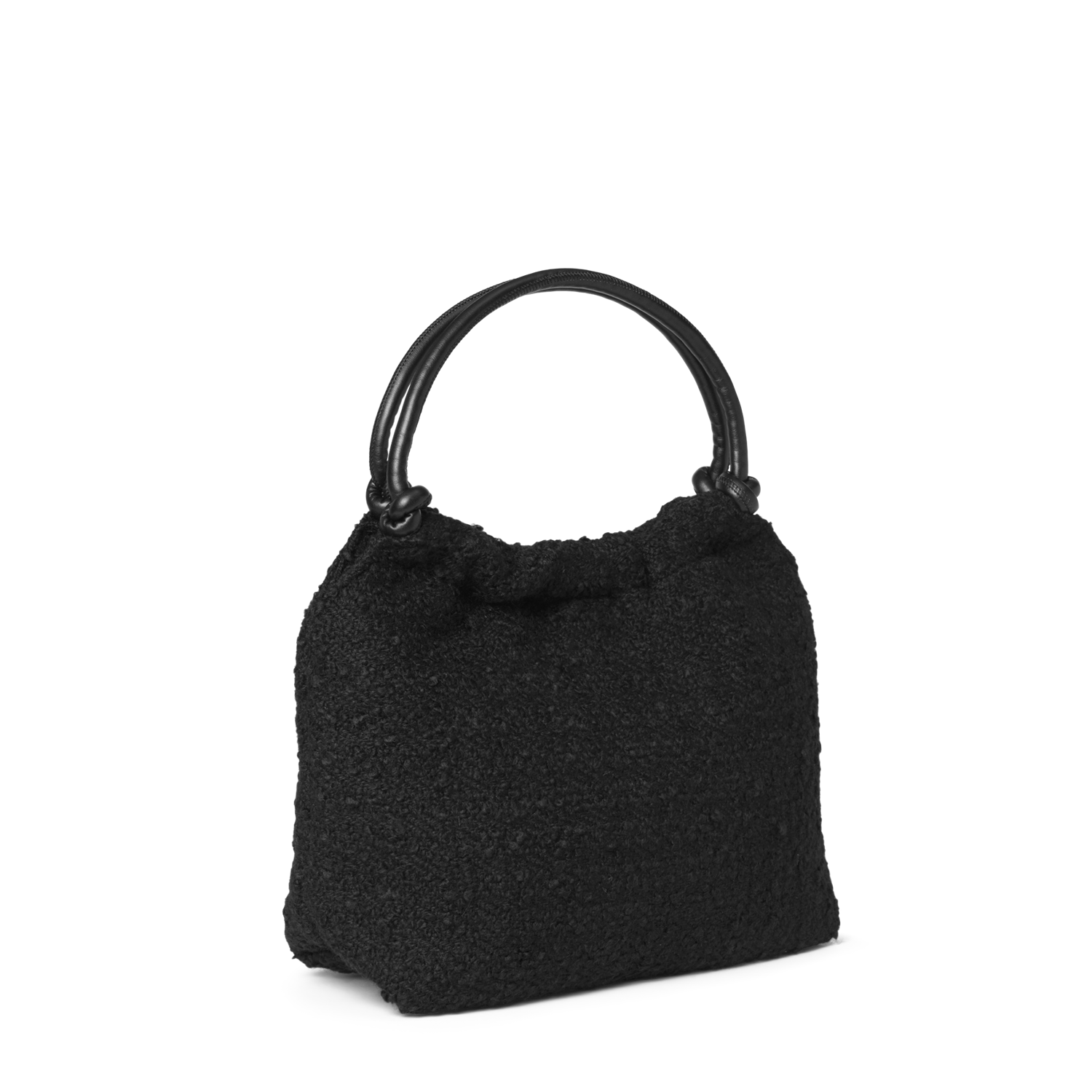 Trendy shopper fra Day Et i sort "Ullstoff". Vesken har sorte skinnreimer og magnetlukking. Innvendig har vesken et glidelåsrom.