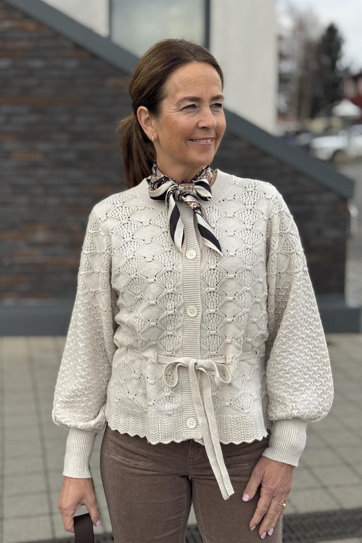 Row pointelle tie cardigan er en vakker cardigan fra Co `Couture. Delikat knytebånd i livet og kabelstrikk.