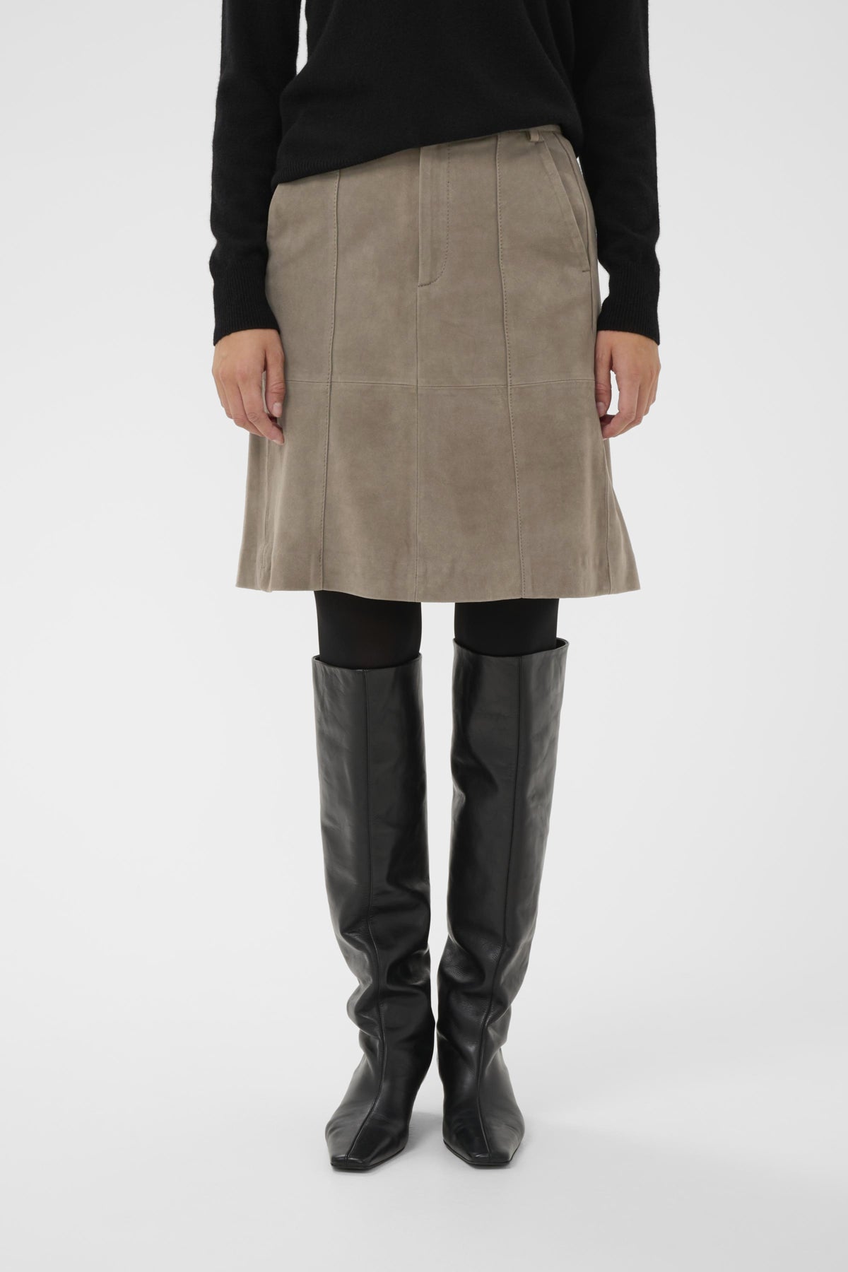 Fint skinnskjørt fra InWear. Carnika er i mykt skinn, har linning og store lommer i front. Lengden er til over kne, og snittet er i lett a-fasong.