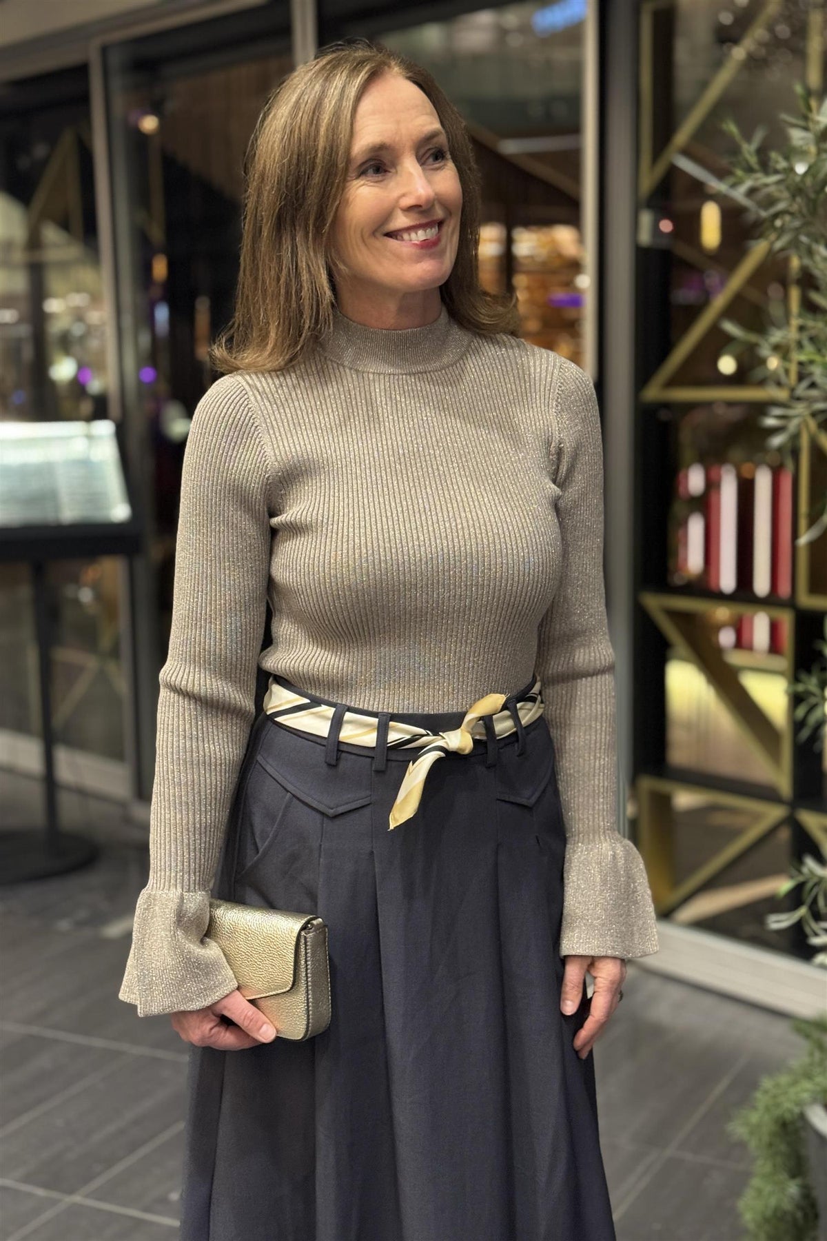 Enkel, men pyntet glittertopp fra Co`Couture. Balin turtlenech har lange ermer med trompetkant nederst som en fin detalj.