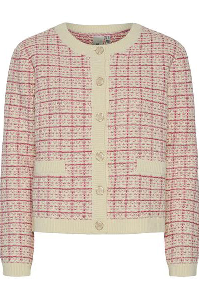 Livia fra YAS er en fin, strikket cardigan i rosa, og kremfarge. Livia har fine detaljer med blå kontraster og knapper i gullfarge. Er rett i fasongen og vanlig i størrelsen.