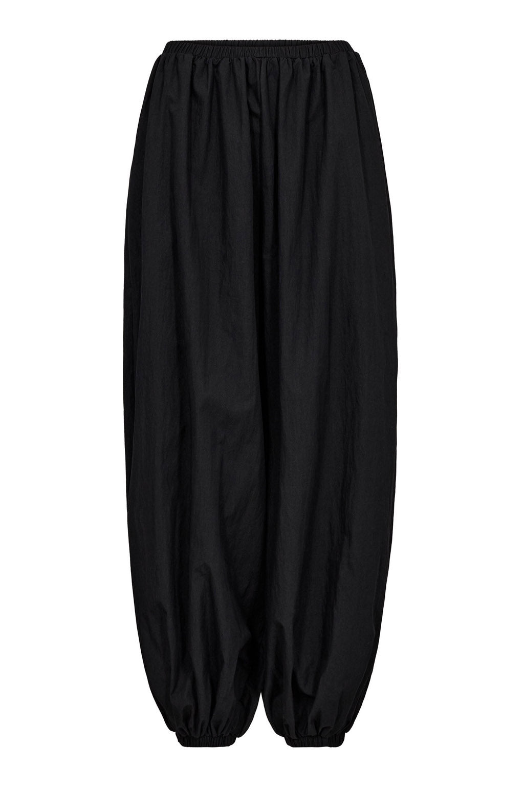 Ballongbuksene er på full fart inn i trendbildet, og Co`Couture er tidlig ute som alltid! Ballon pant har mye vidde hele veien, og smalner inn i strikk nederst på bena. Strikk i livet gjør den behagelig på.