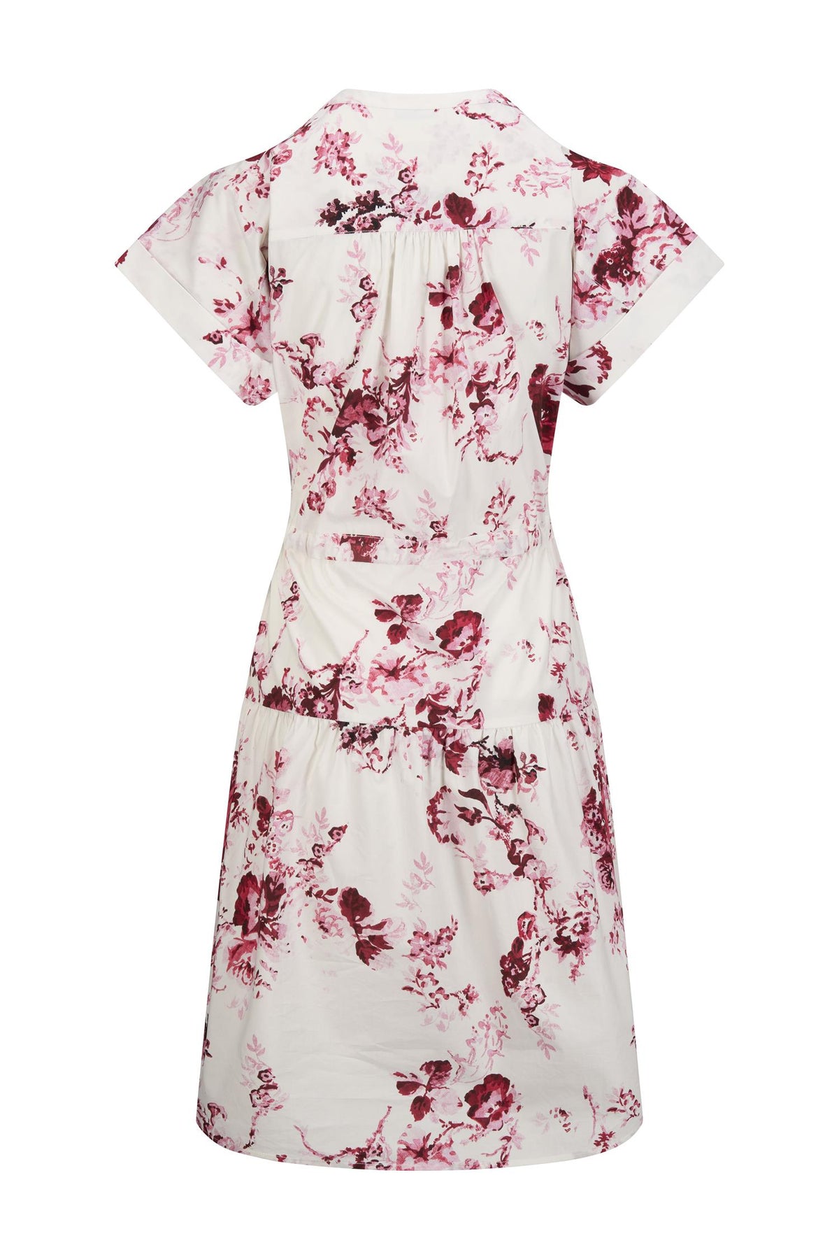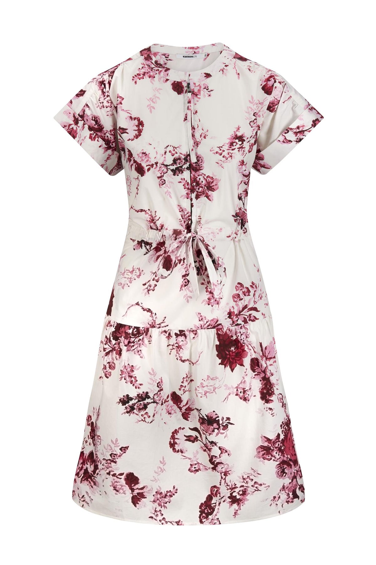 Nydelig kjole fra Katrin Uri i 100% Cotton . Nydelig blomsterprint i rosa og bordeux toner. God vidde på kjolen og i tillegg lett a-fasong. Glidelås midt foran til livet.