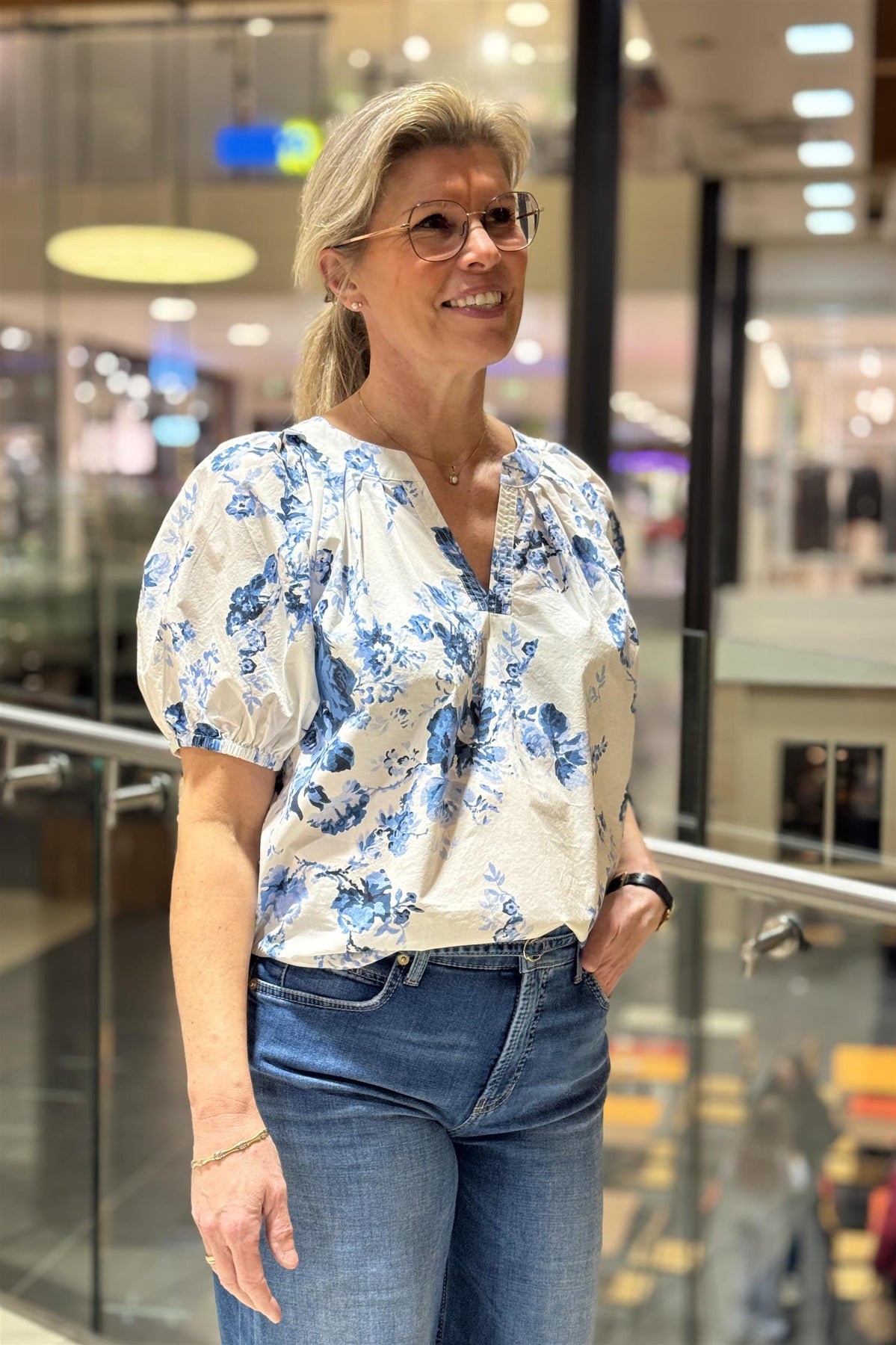 Lisboa Amanda bluse fra Katrin Uri i nydelig sommerprint, i klare blåtoner.
