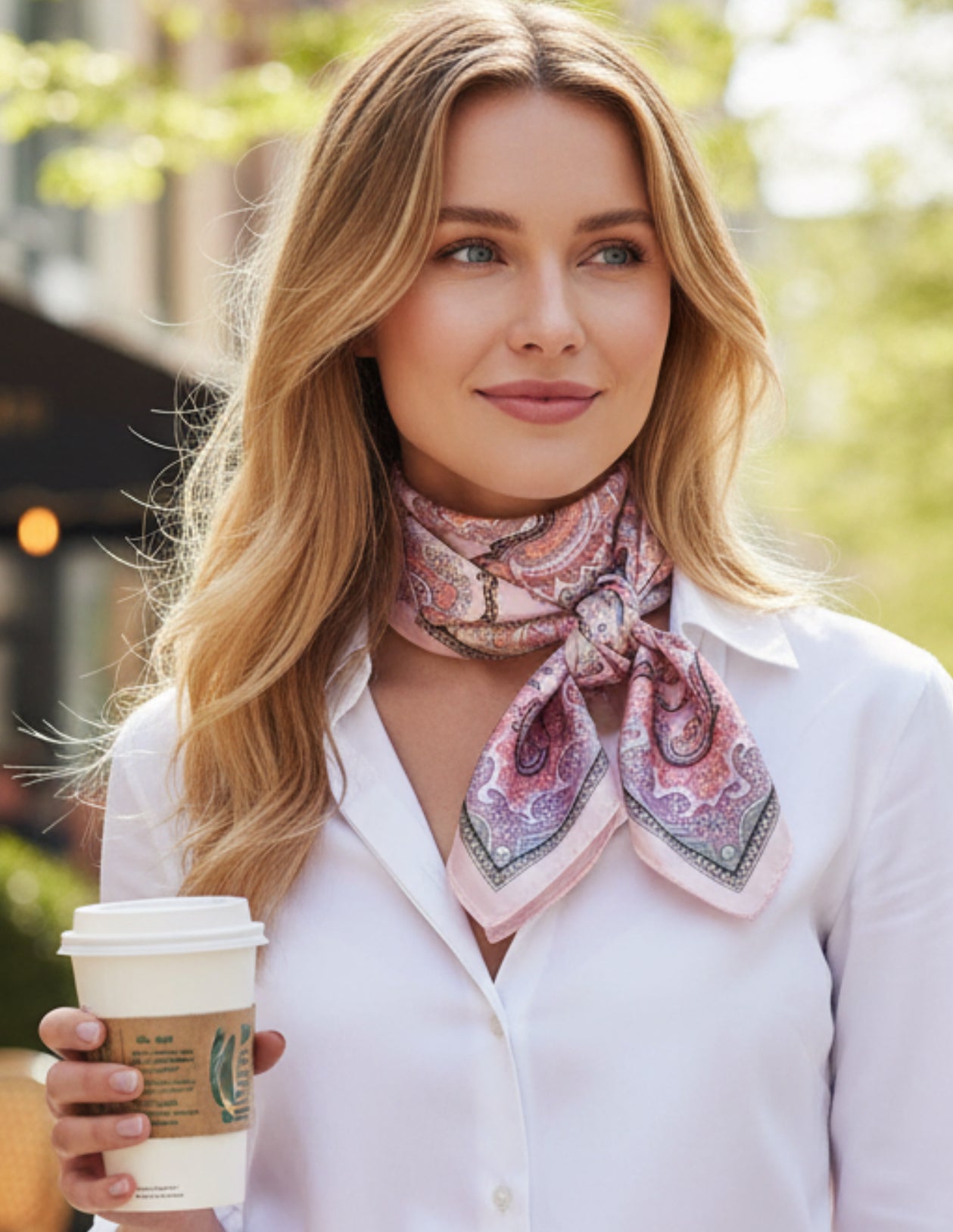 De små skjerfene trender nå, og gir det lille ekstra til antrekket - en feminin fransk touch. Knyt de tett i halsen, lag en sløyfe, eller lag linjer med å knyte de som et slips. Vi foreslår også de fine skjerf-ringene som pynter opp, og gjør skjerfet enkelt å knyte.