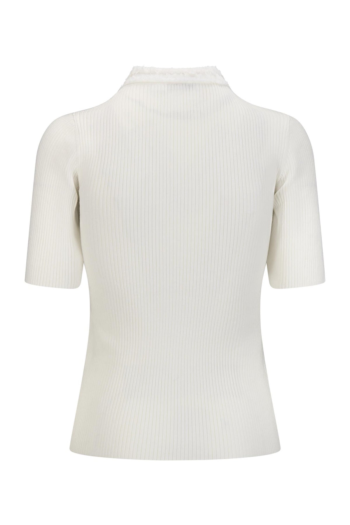 Malibu har rund hals, med knepping i front. To lommer på brystet, og er strikket i smal rillestrikk. Er vanlig i størrelse, smal fasong.