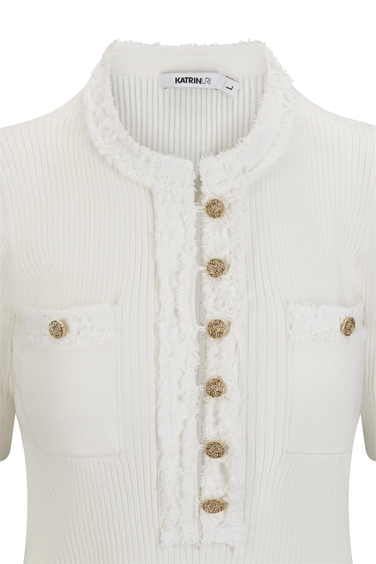 Malibu er sesonges hit fra Katrin Uri. Genseren er klassisk med kort erm, kul og retro på en gang. Gullknappene er med å gi den et eksklusivt preg.