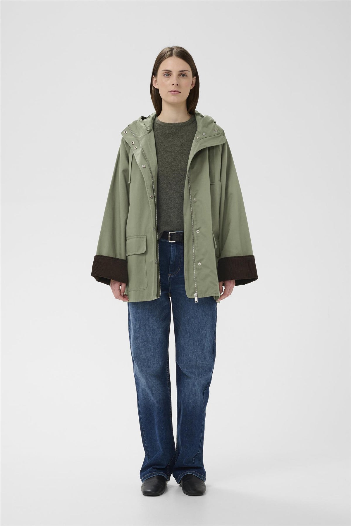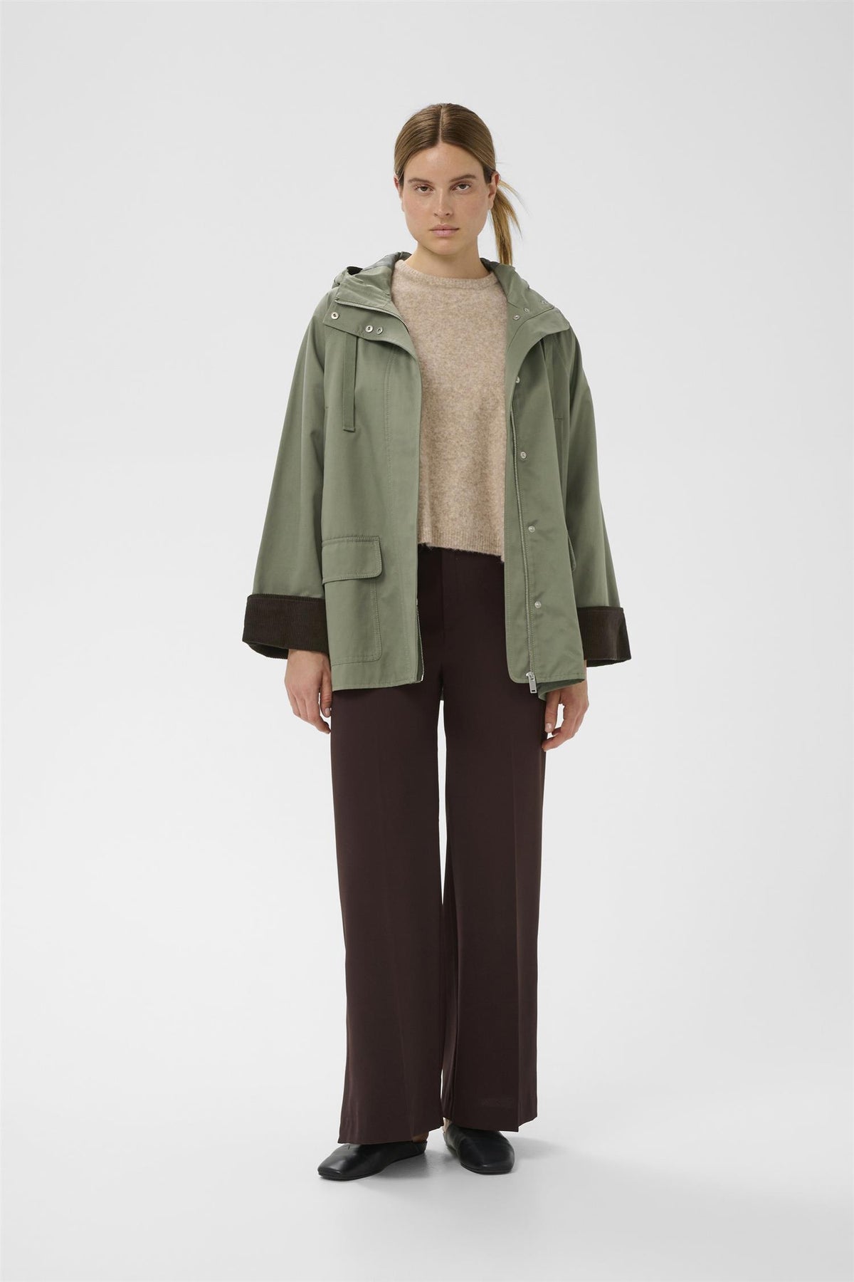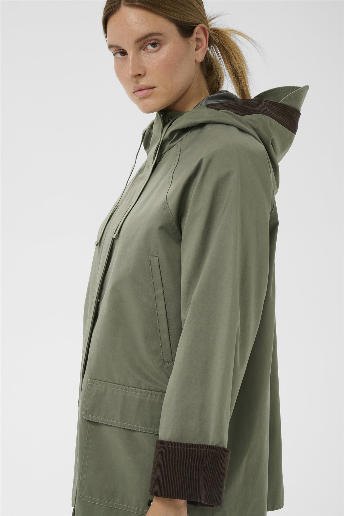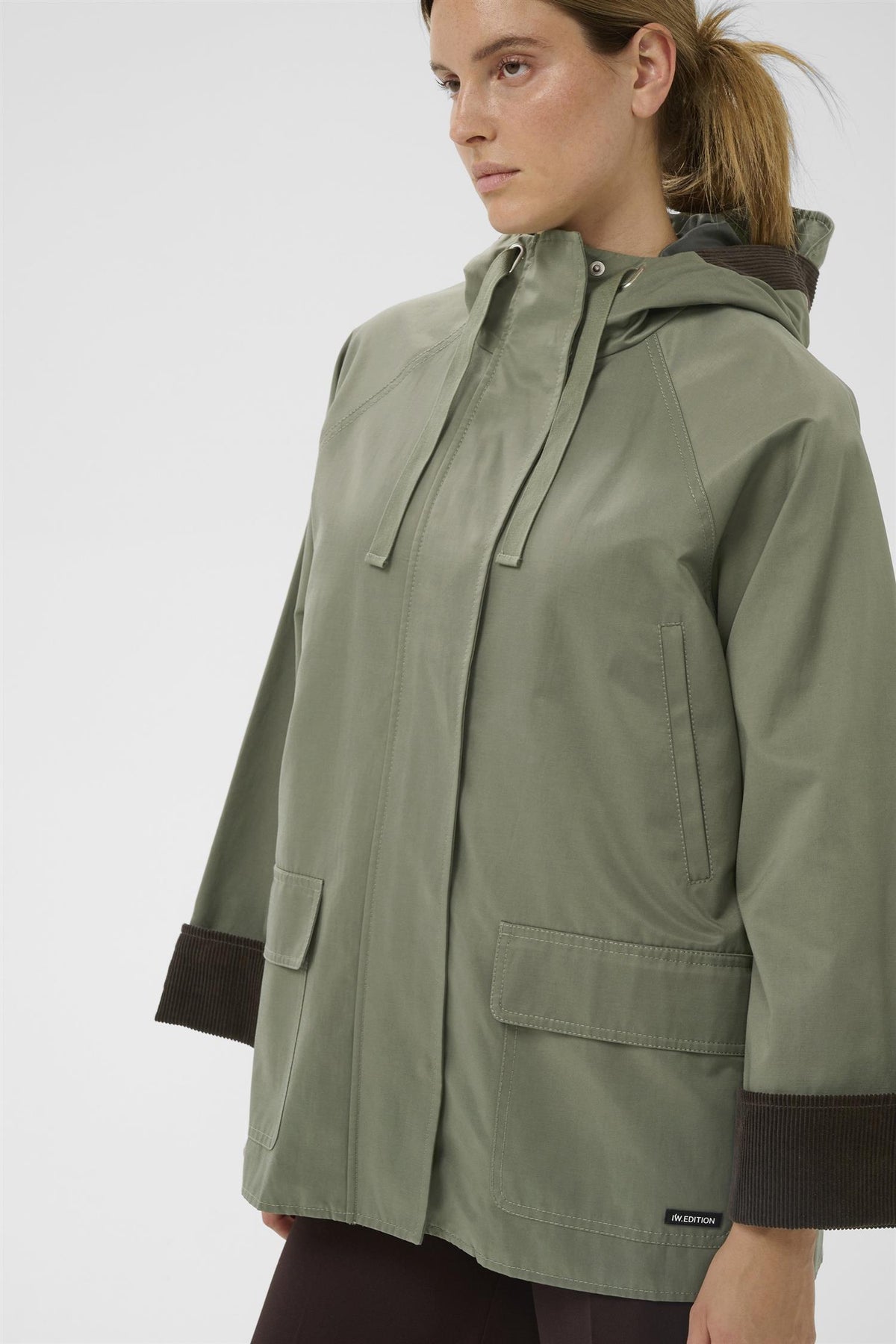 GRACELYNNIW HOODED JACKET er en stilren og komfortabel jakke i en trendy farge kalt Mulled Basil. Laget av en blanding av bomull og polyester, gir denne jakken både mykhet og holdbarhet, perfekt for hverdagsbruk.