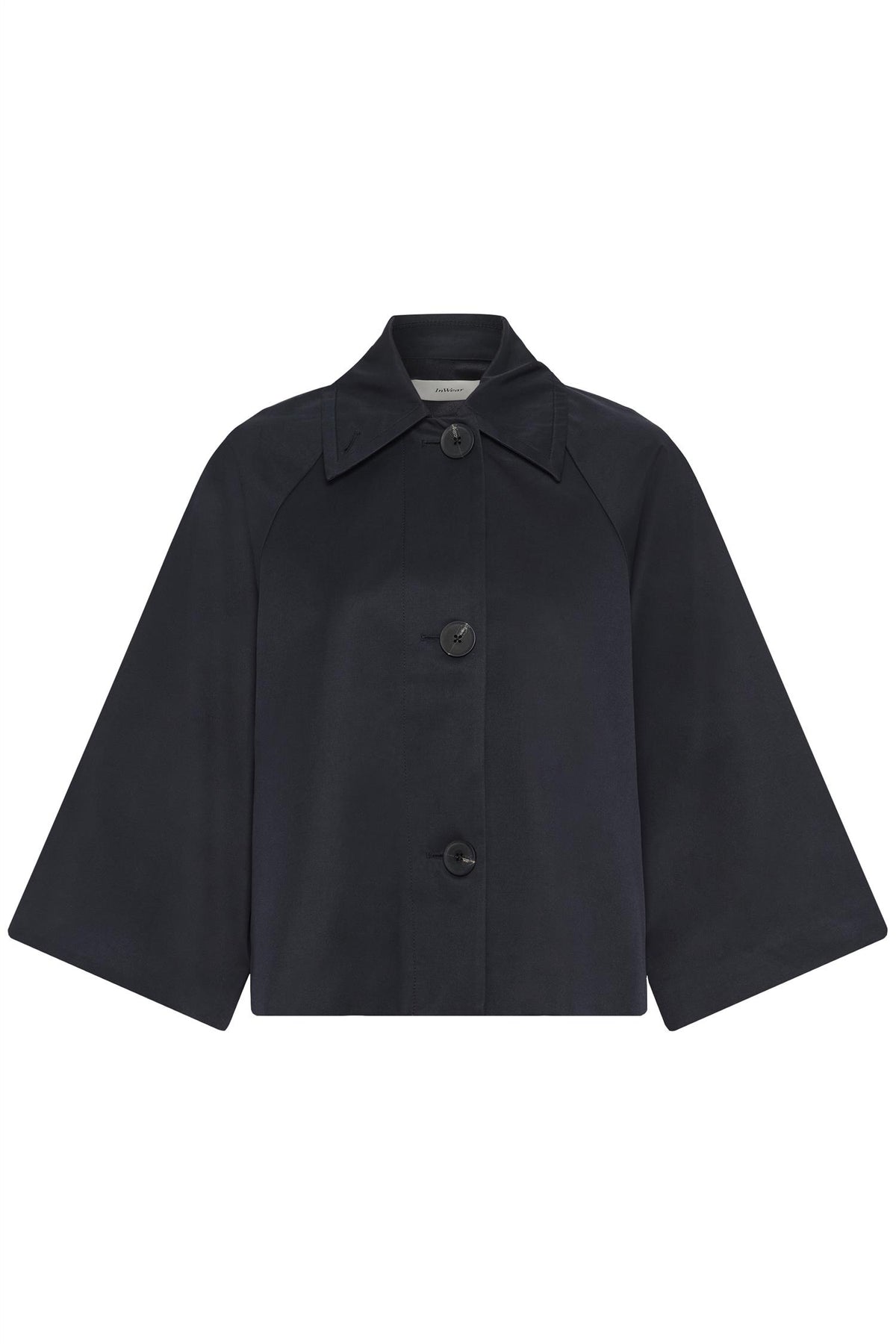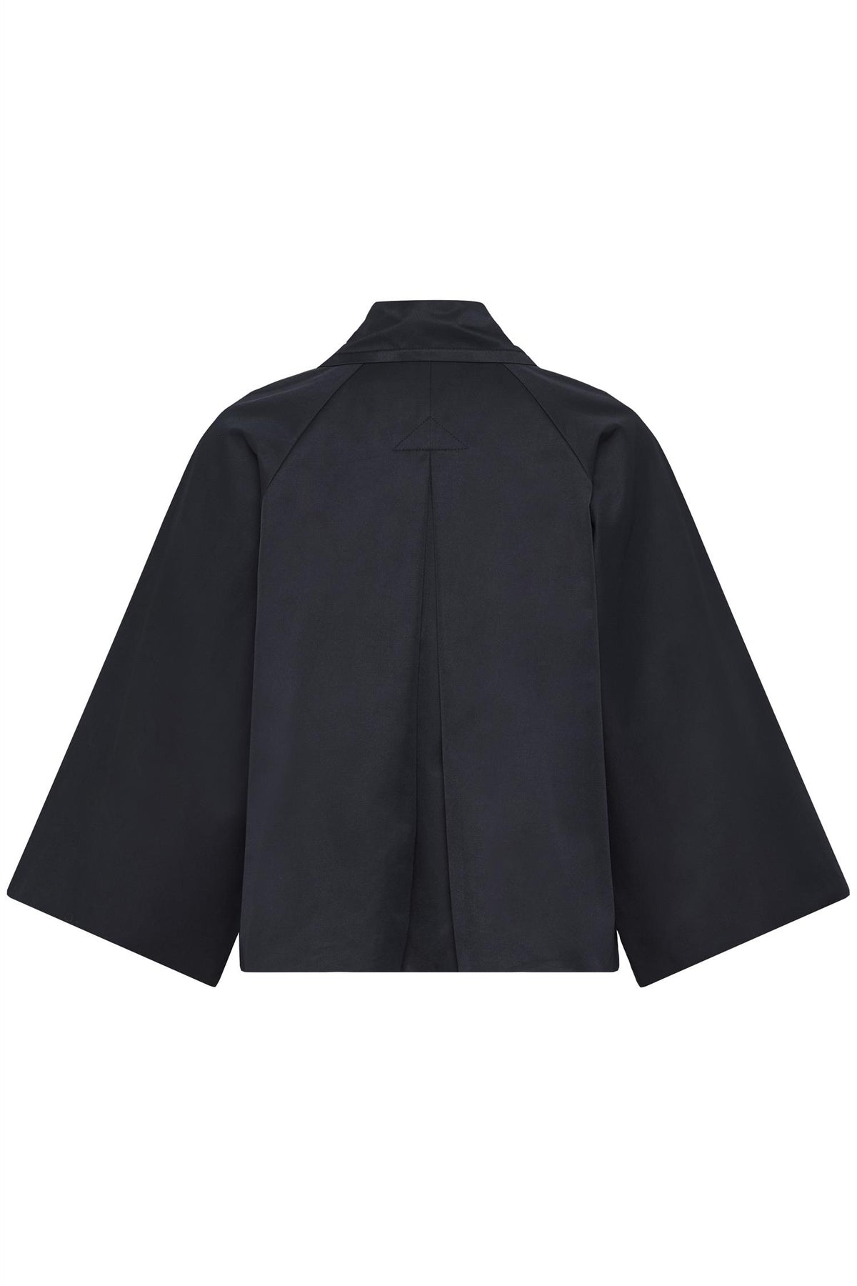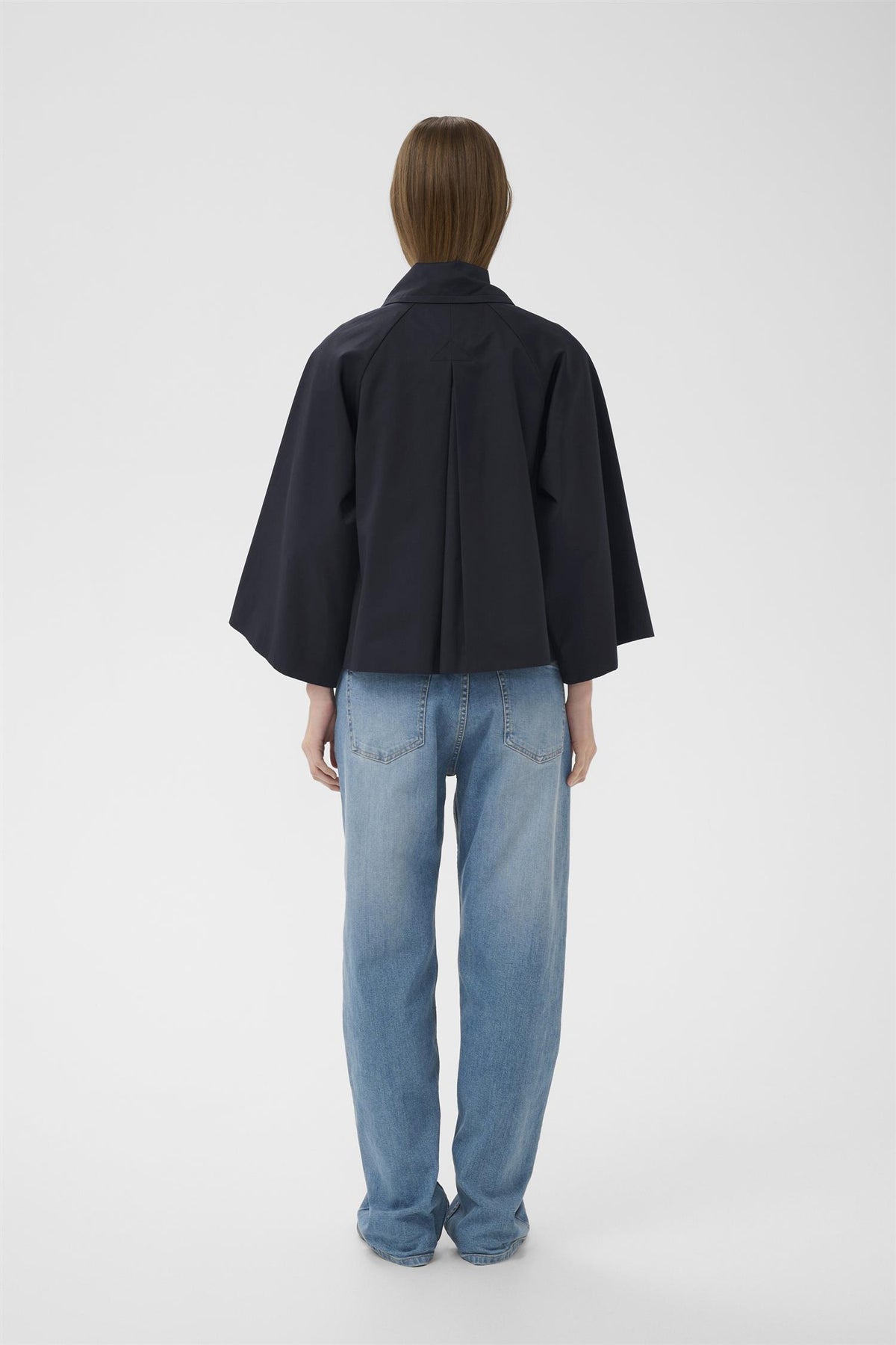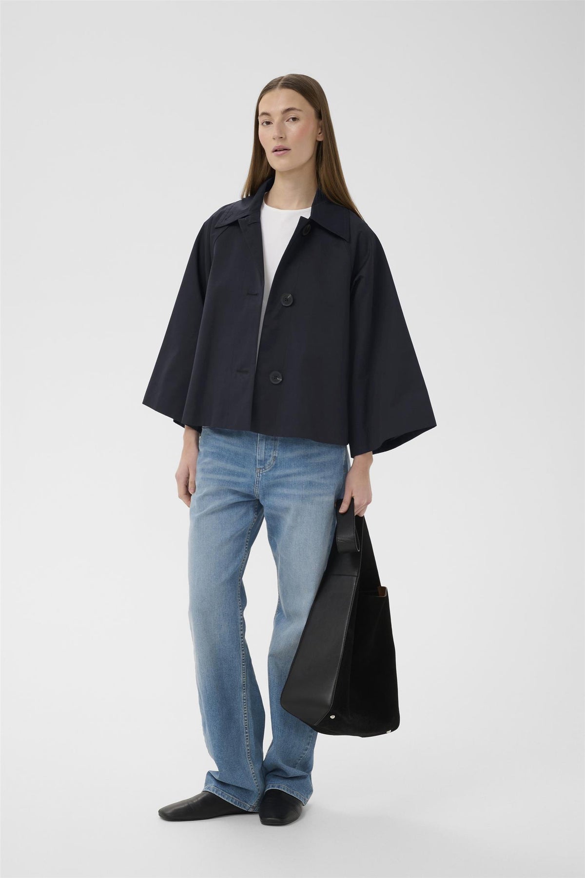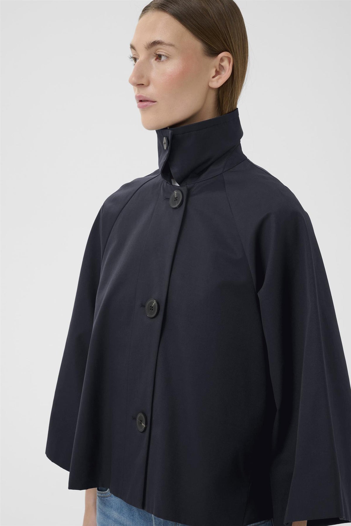 HINONAIW CAPE JACKET er en stilren og komfortabel jakke i marineblå farge, perfekt for å gi et elegant preg til din yttertøy-kolleksjon. Med en løs passform og hoftelengde, er denne jakken ideell for hverdagsbruk.